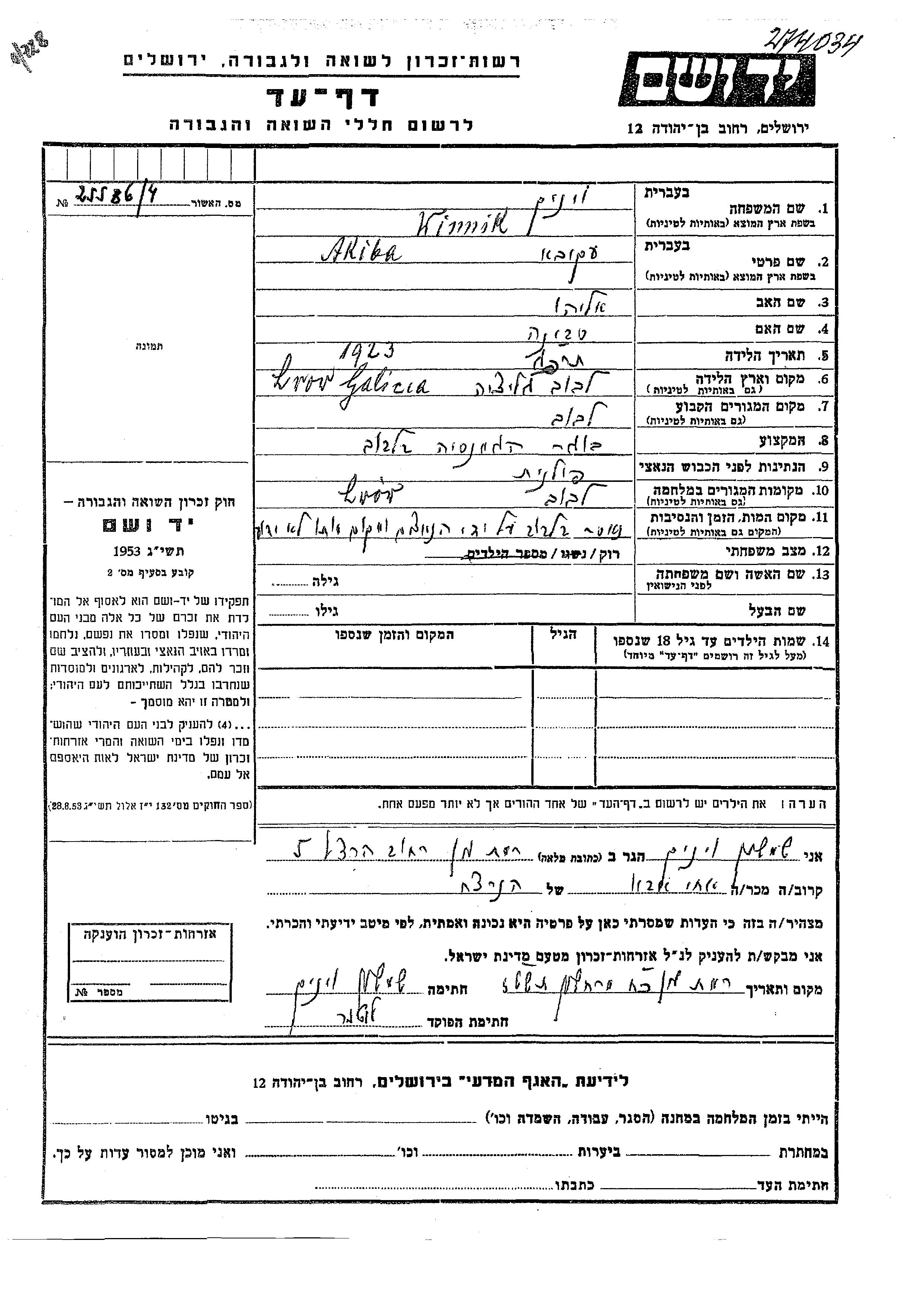 Akiba wurde in der Schoah ermordet. Todesort: Lwow, Polen.