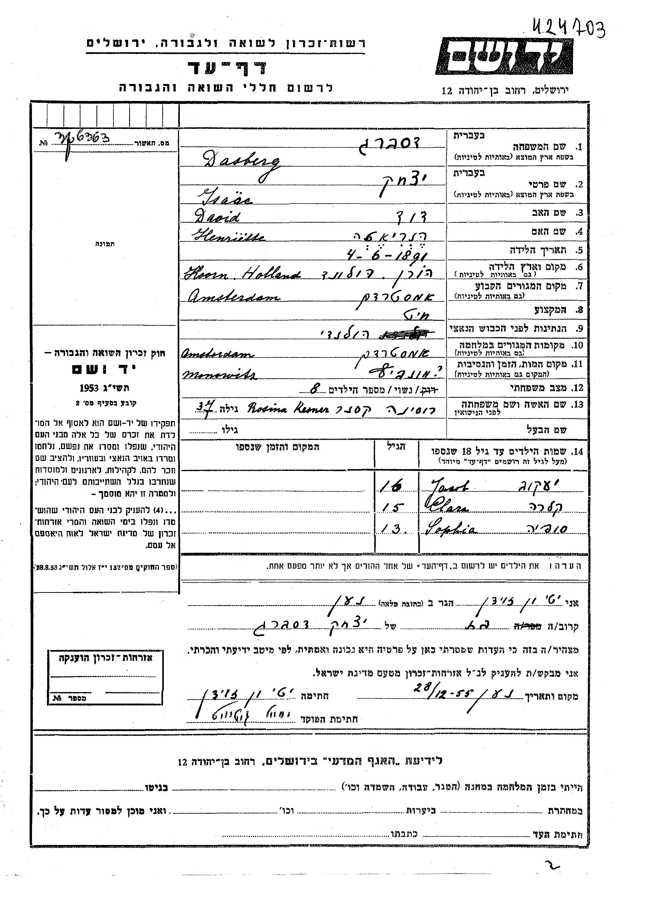 Dasberg Isaac 1891 Amsterdam, Niederlande Gedenkblatt