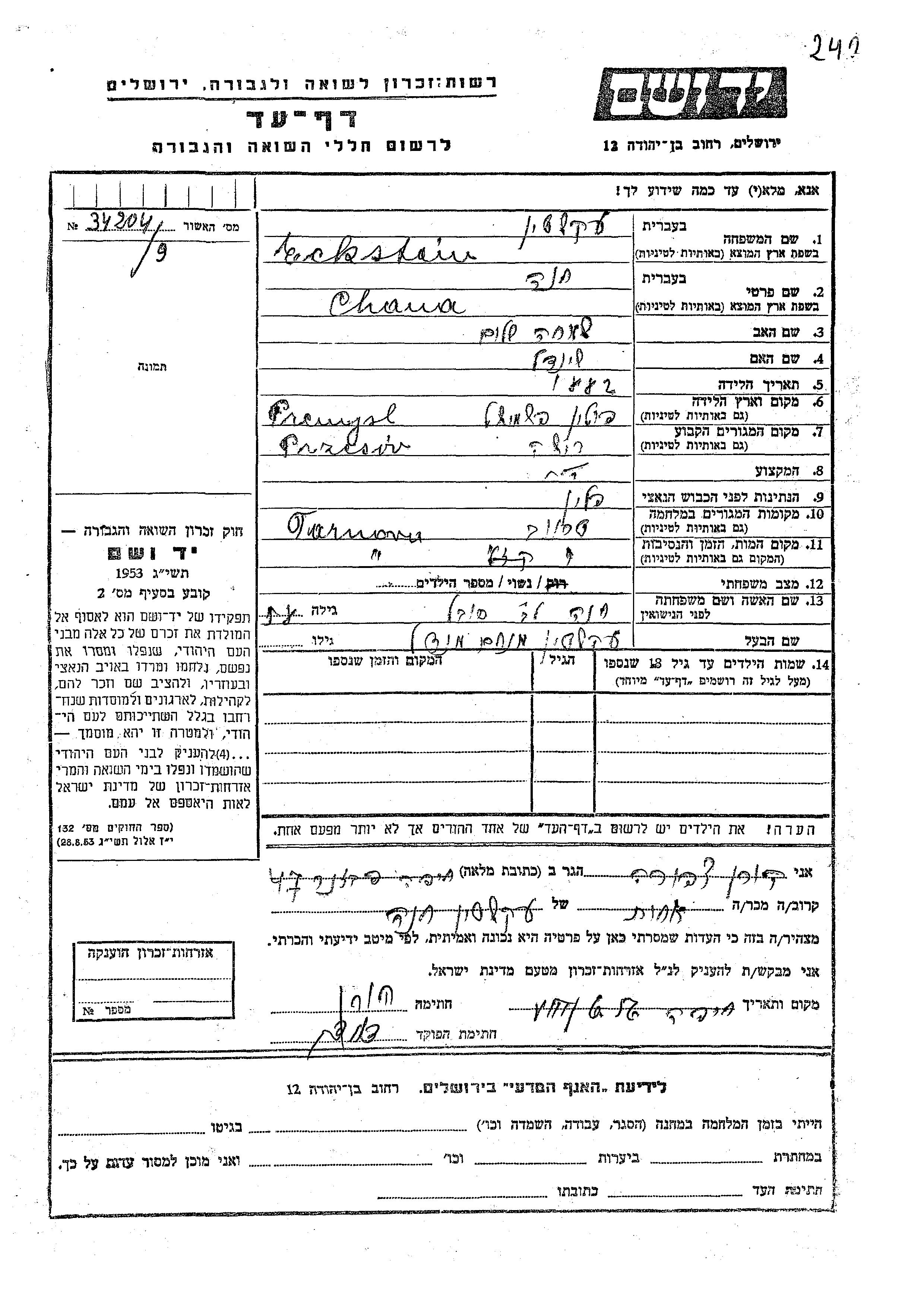 Chana wurde in der Schoah ermordet. Todesort: Tarnow, Polen.