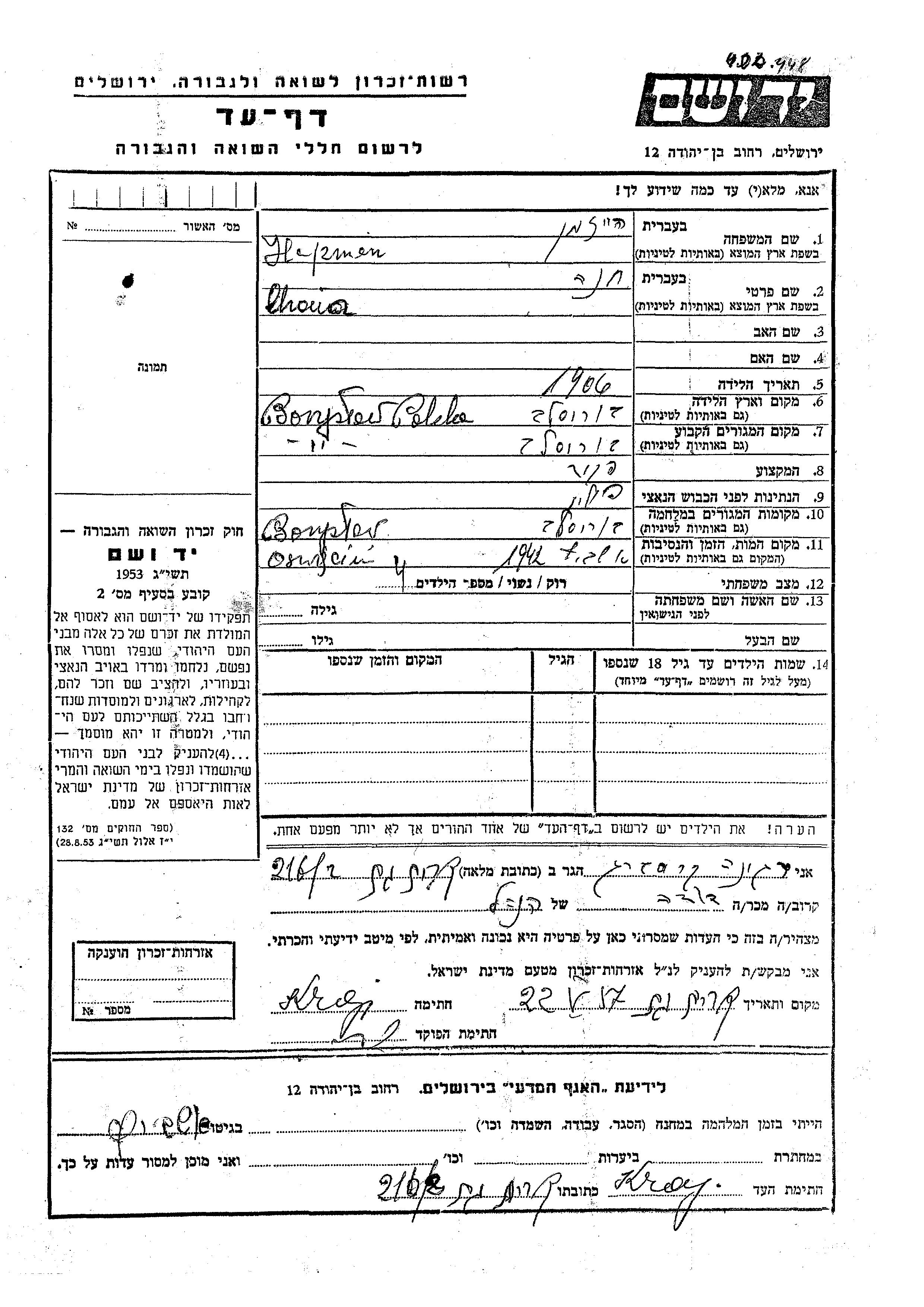 Chana Hajzman wurde im Jahr 1906 in Boryslaw, Polen geboren. Sie war Angestellte/-r und Verheiratet. Vor dem Zweiten Weltkrieg lebte sie in Boryslaw, Polen. Während des Krieges war sie in Boryslaw, Polen.
