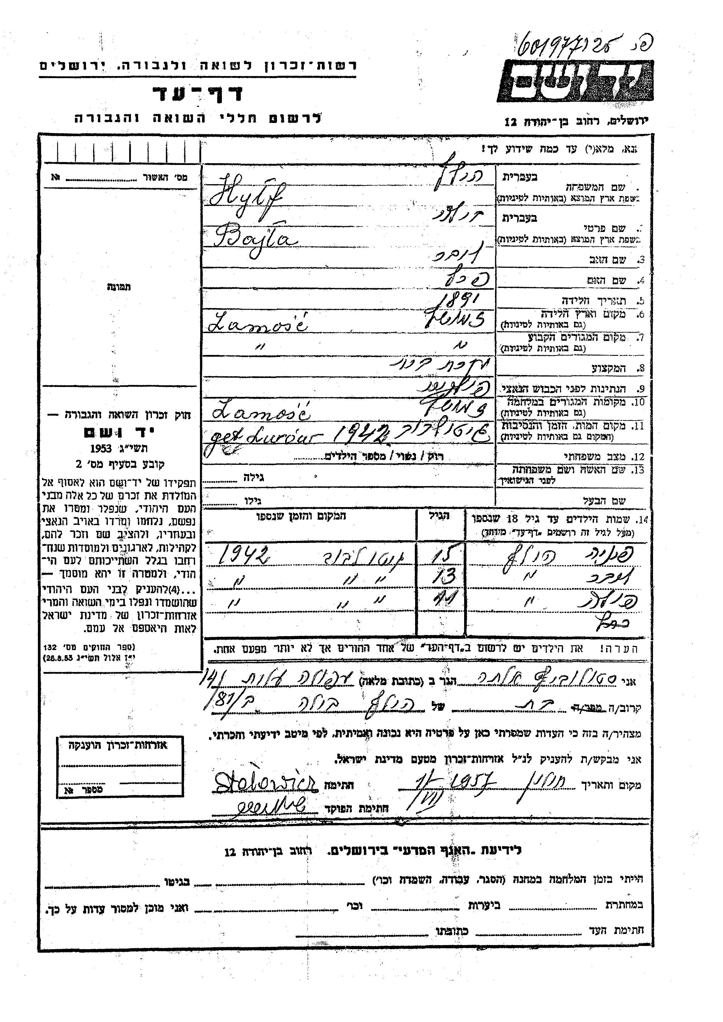 Bajla wurde in der Schoah ermordet. Todesort: Lwow, Polen im Jahr 1942.