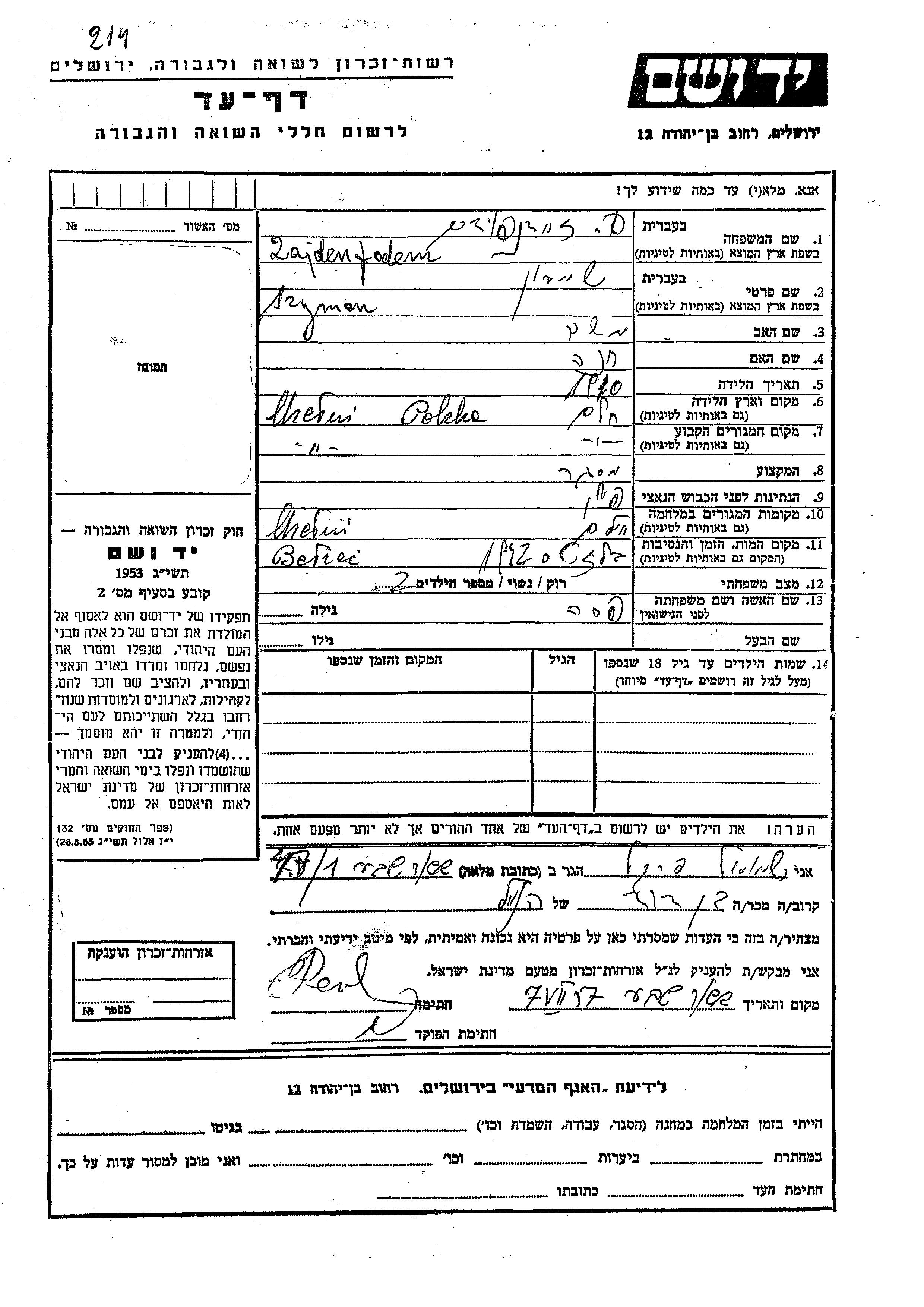 Zajdenfodem Szymon 1920 Chelm, Polen Gedenkblatt