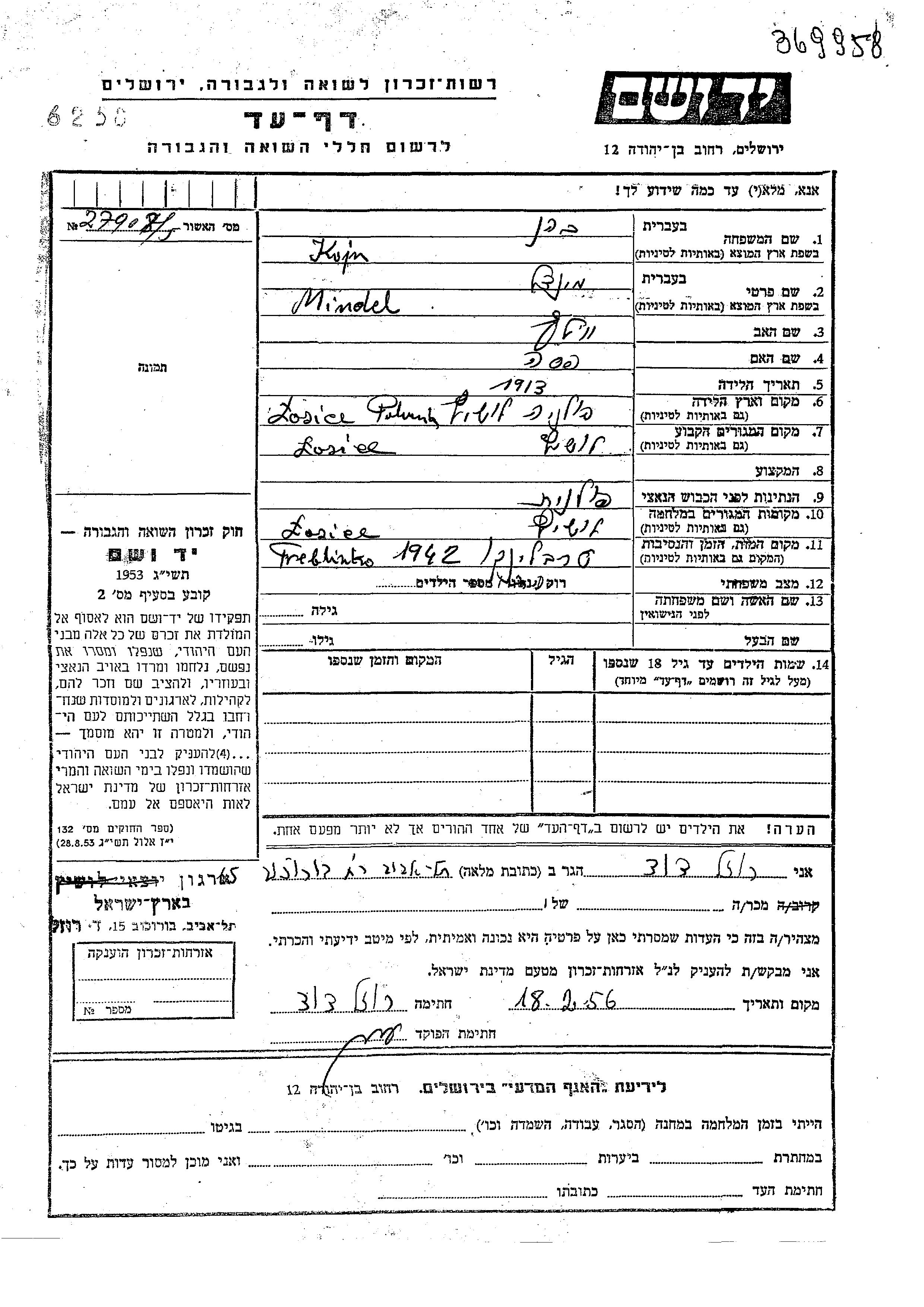 Mindl wurde in der Schoah ermordet. Todesort: Treblinka, Polen im Jahr 1942.