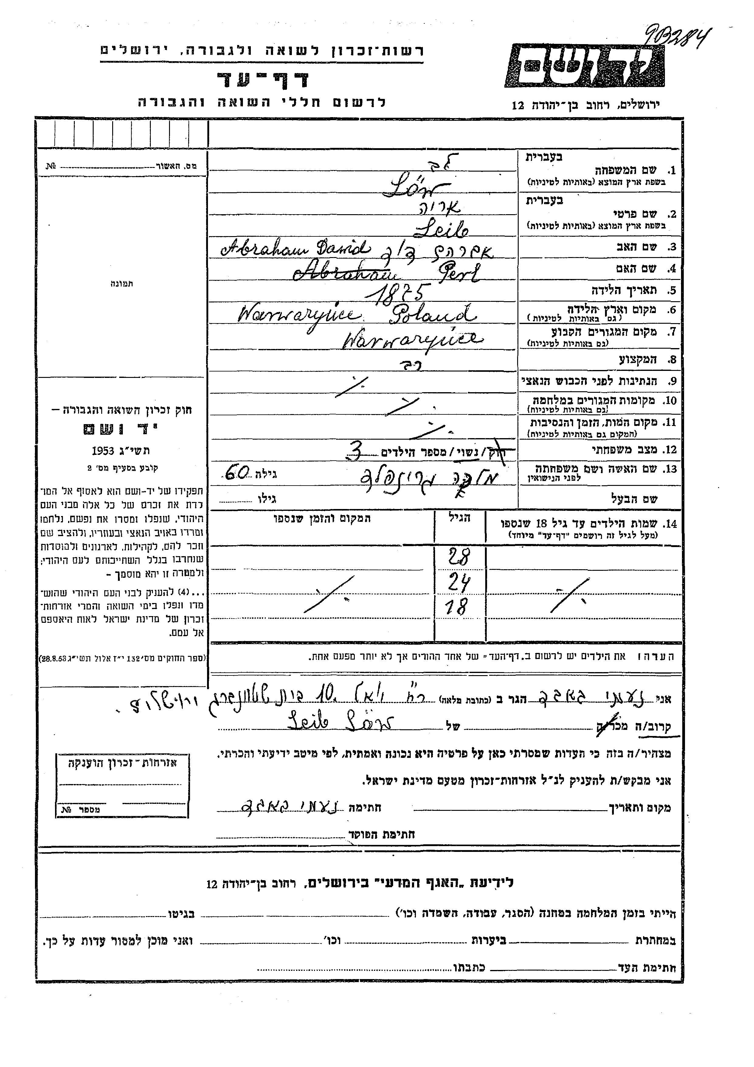 Leib Arie wurde in der Schoah ermordet.