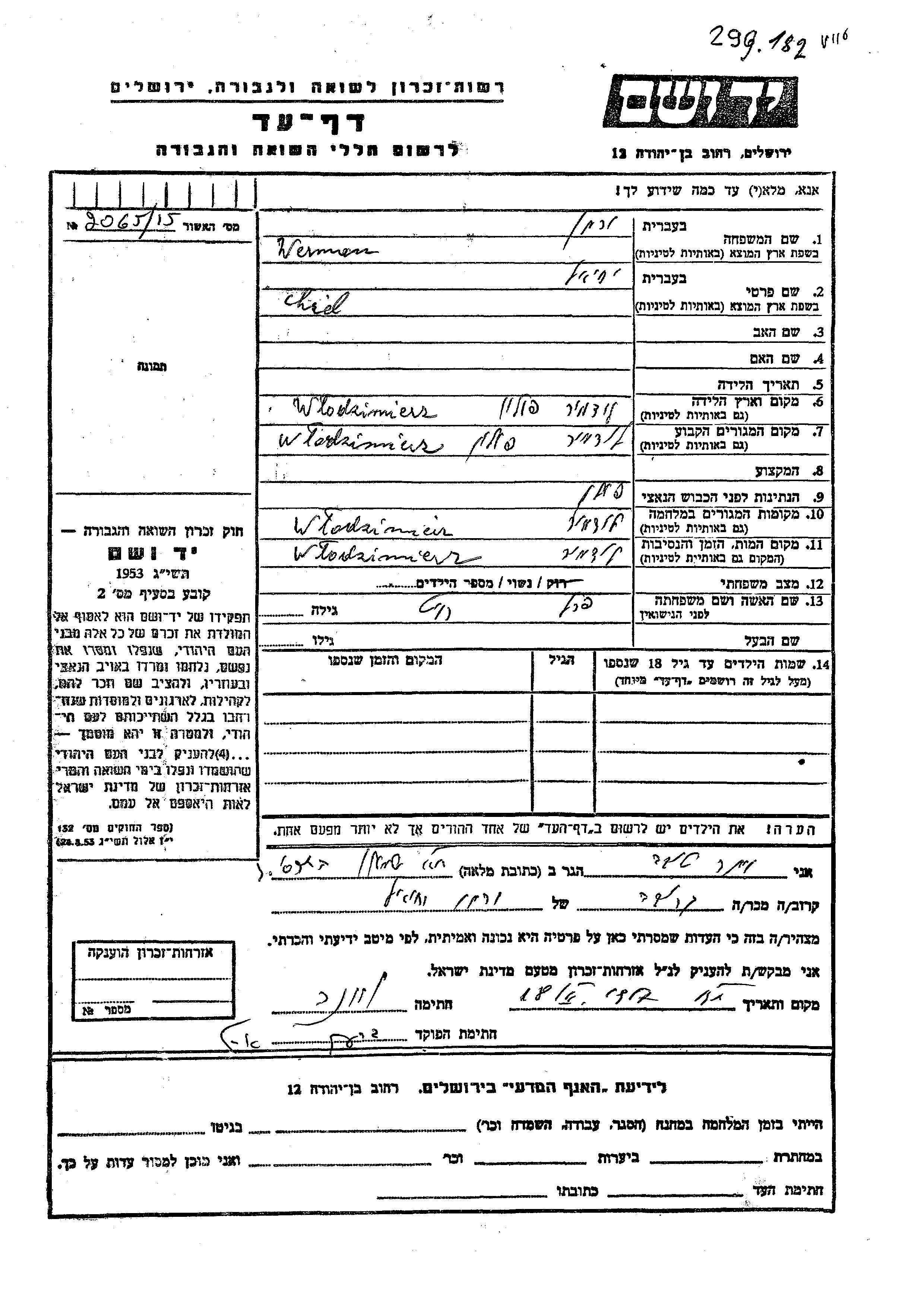 Chiel Werman wurde in Wlodzimierz, Polen geboren. Er war mit Perel, geb. Rut Verheiratet. Vor dem Zweiten Weltkrieg lebte er in Wlodzimierz, Polen. Während des Krieges war er in Wlodzimierz, Polen.