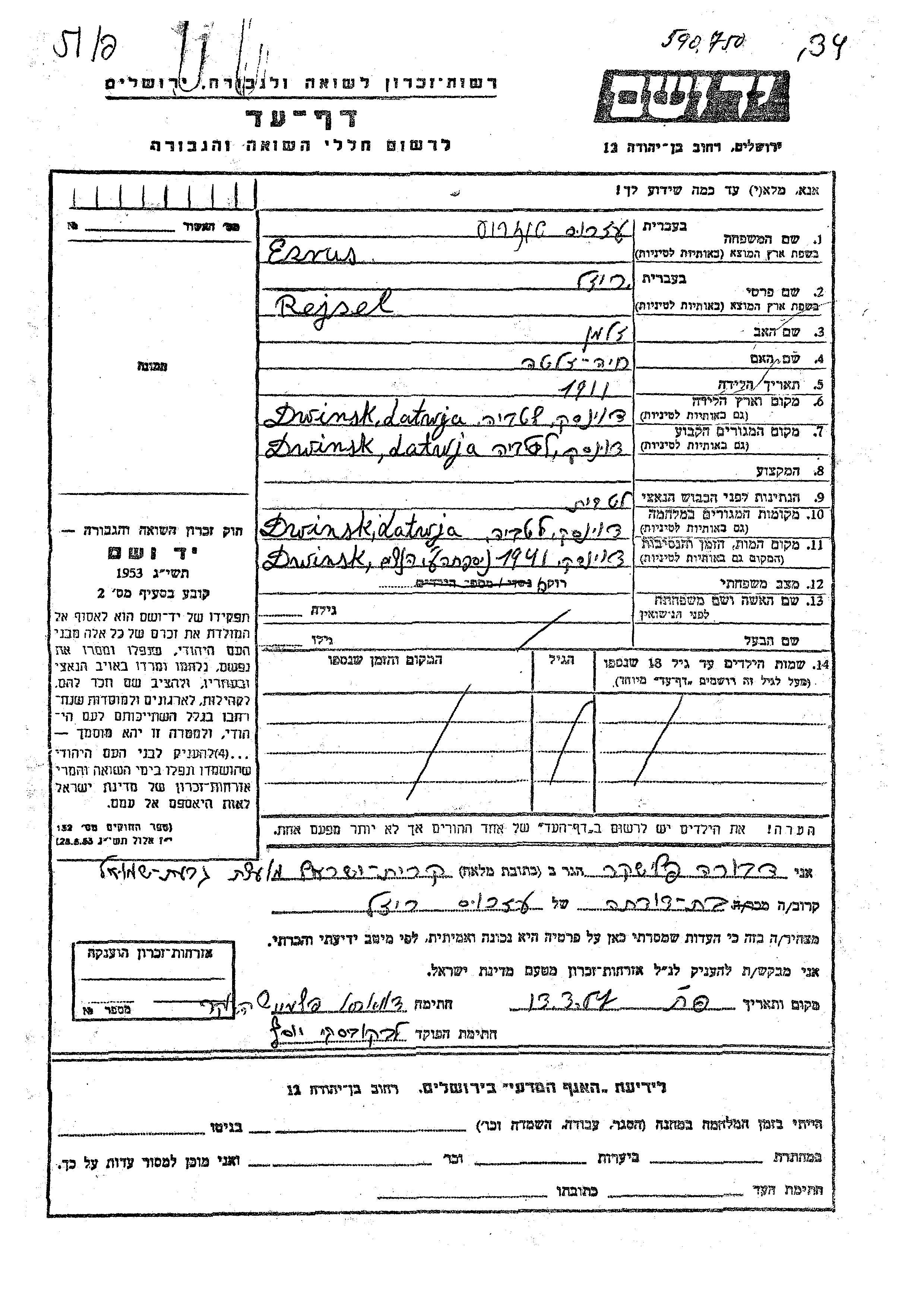 Rejzel wurde in der Schoah ermordet. Todesort: Dwinsk, Lettland im Jahr 1941.