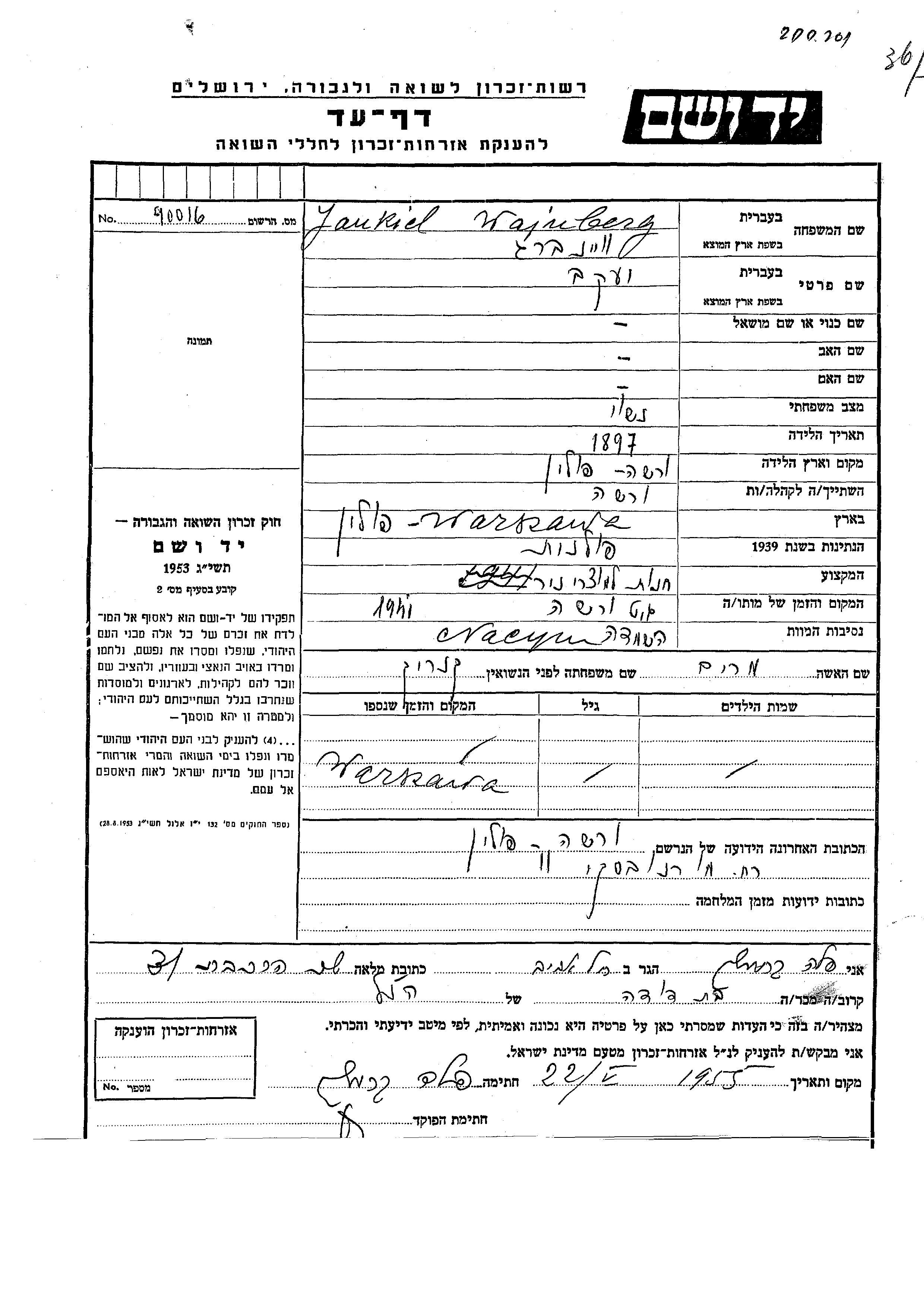 Jankiel wurde in der Schoah ermordet. Todesort: Warsaw, Polen im Jahr 1941.