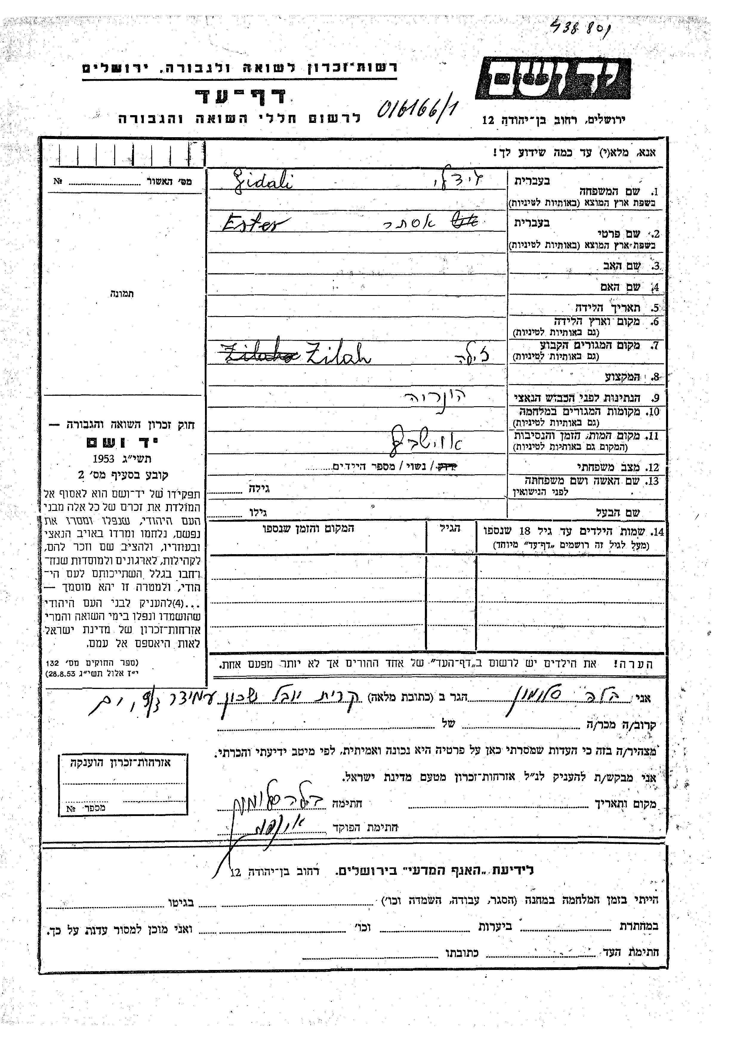 Ester Gidali. Sie war Verheiratet. Vor dem Zweiten Weltkrieg lebte sie in Zilah, Rumänien.