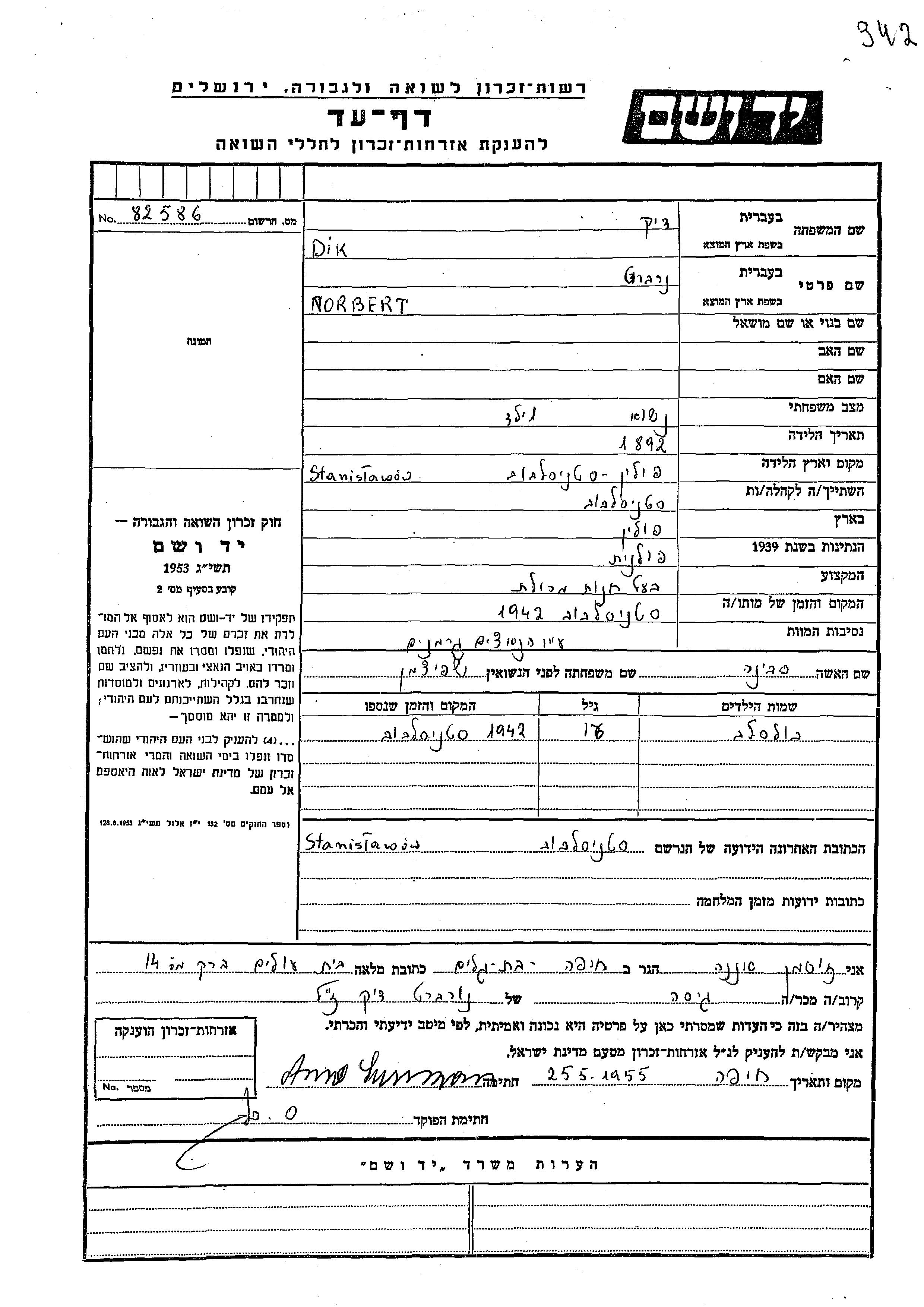Norbert wurde in der Schoah ermordet. Todesort: Stanislau, Polen im Jahr 1942.