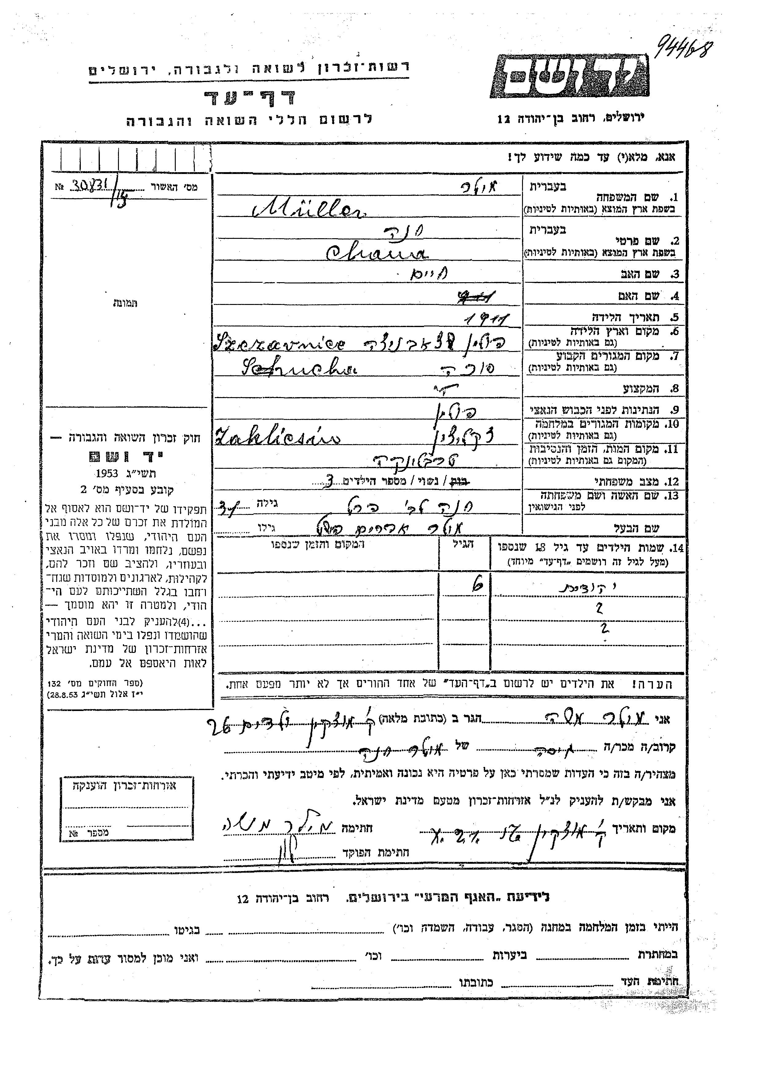 Muller Chana 1911 Sucha, Polen Gedenkblatt