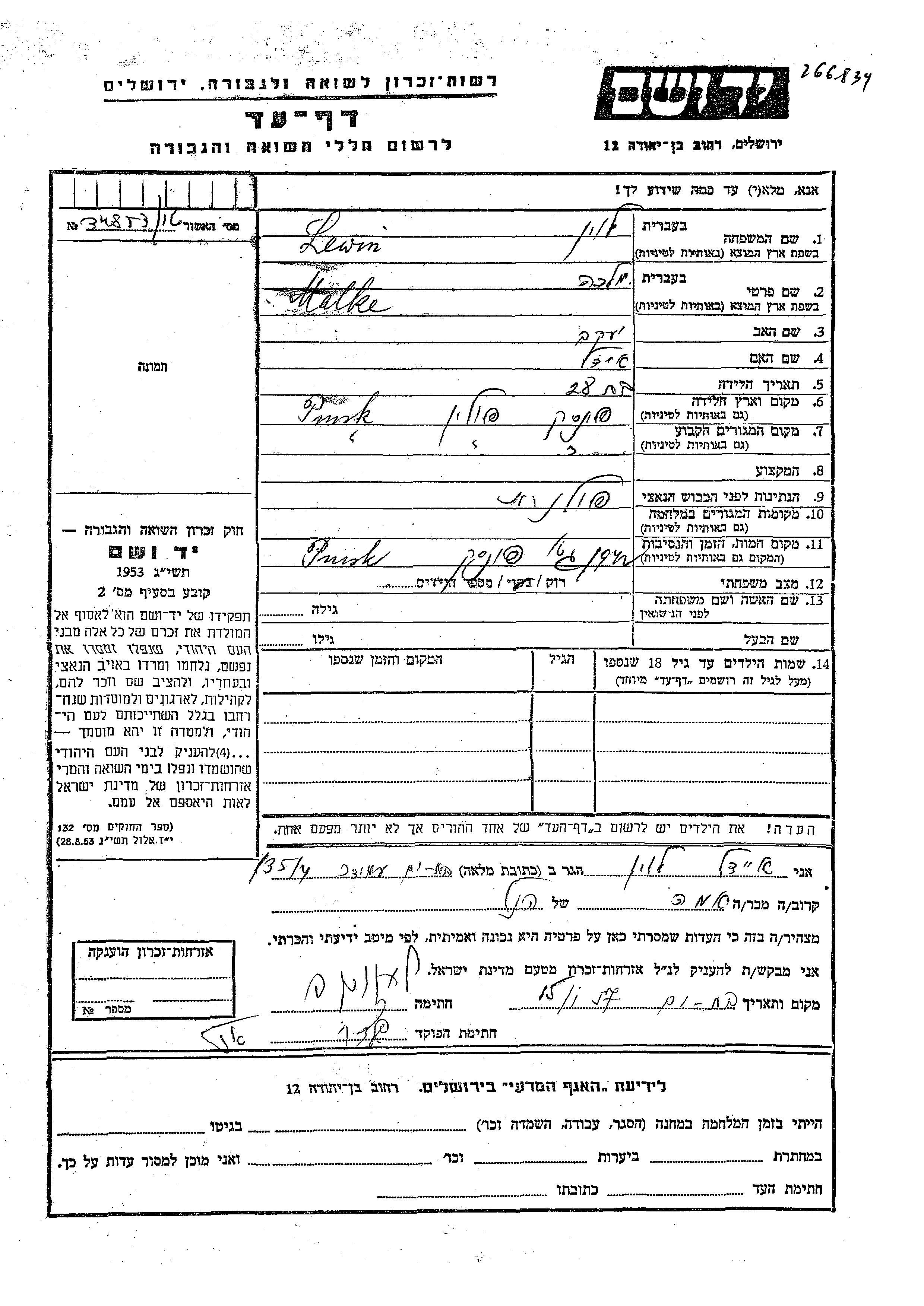 Malke Lewin wurde in Pinsk, Polen geboren. Sie war die Tochter von Yaakov und Idl. Sie war Ledig. Vor dem Zweiten Weltkrieg lebte sie in Pinsk, Polen.