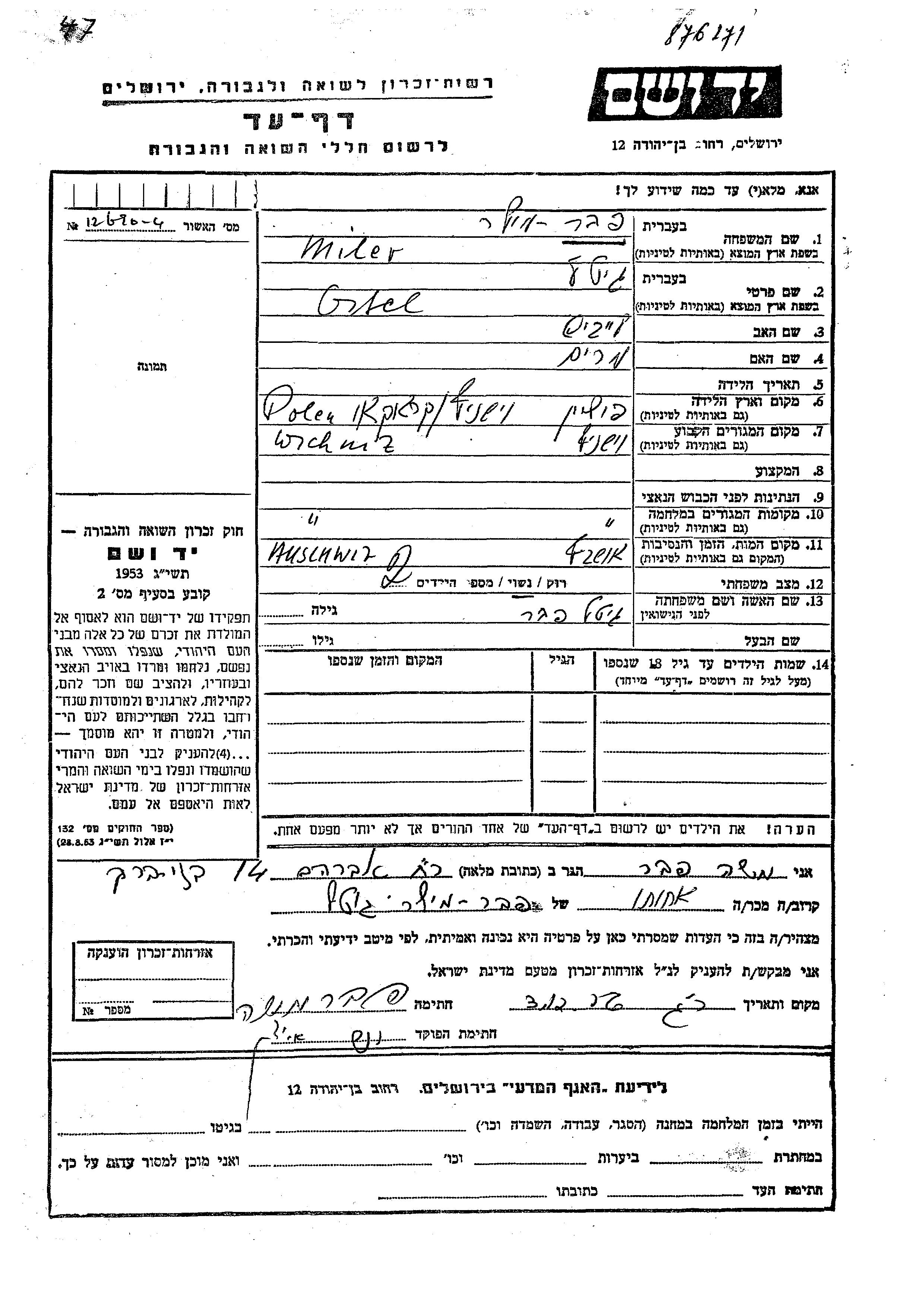 Gitel wurde in der Schoah ermordet. Todesort: Auschwitz, Polen.