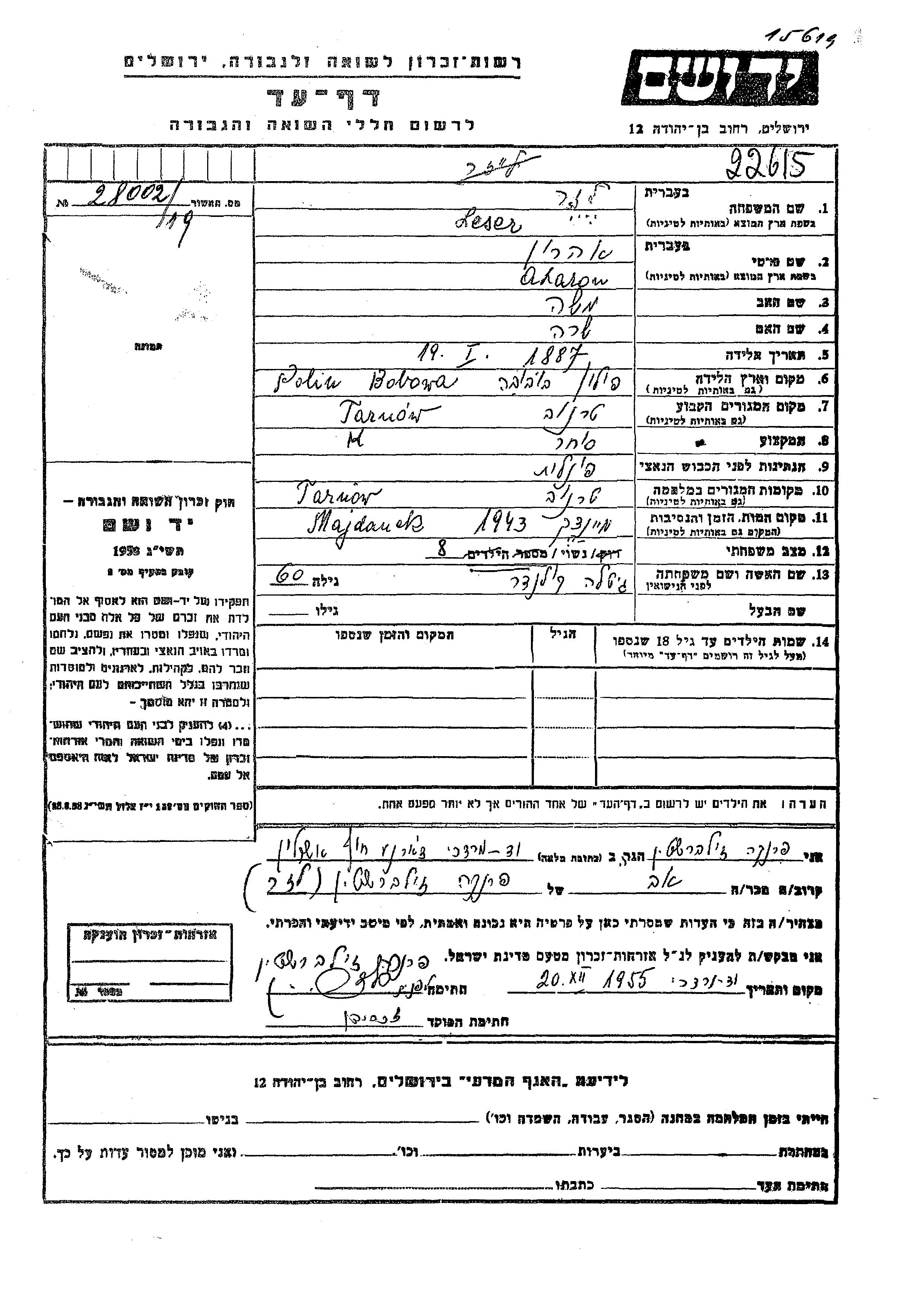 Aharon wurde in der Schoah ermordet. Todesort: Majdanek, Polen im Jahr 1943.