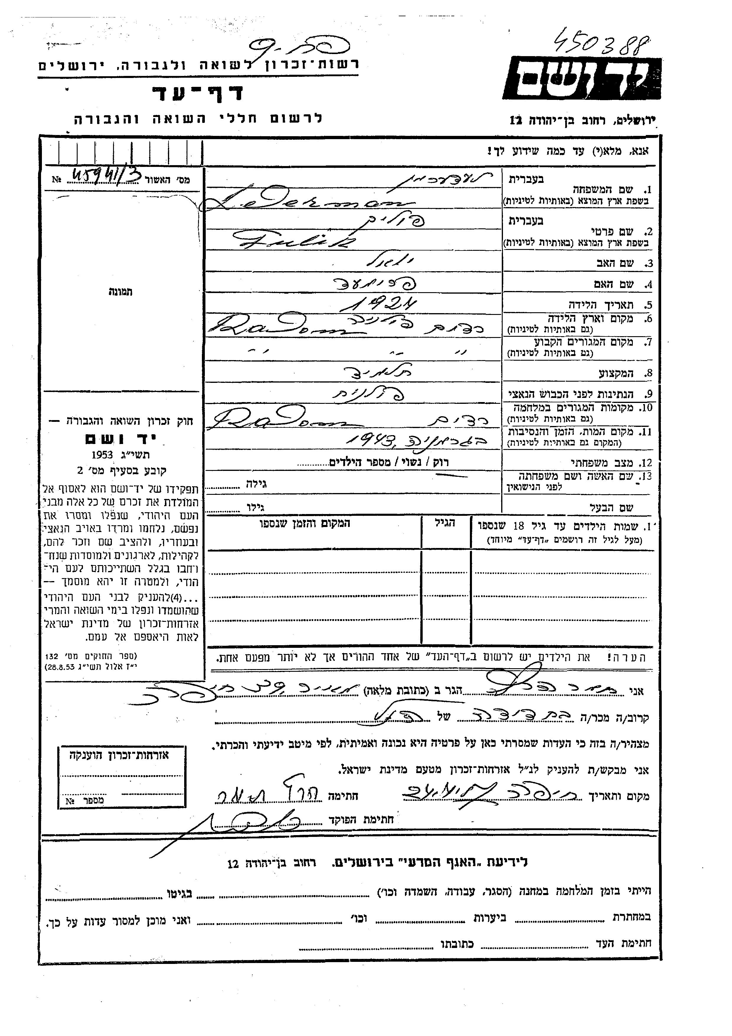 Fulik Lederman wurde im Jahr 1924 in Radom, Polen geboren. Er war der Sohn von Yoel und Frumet. Er war Schüler/-in und Ledig. Vor dem Zweiten Weltkrieg lebte er in Radom, Polen. Während des Krieges war er in Radom, Polen.
