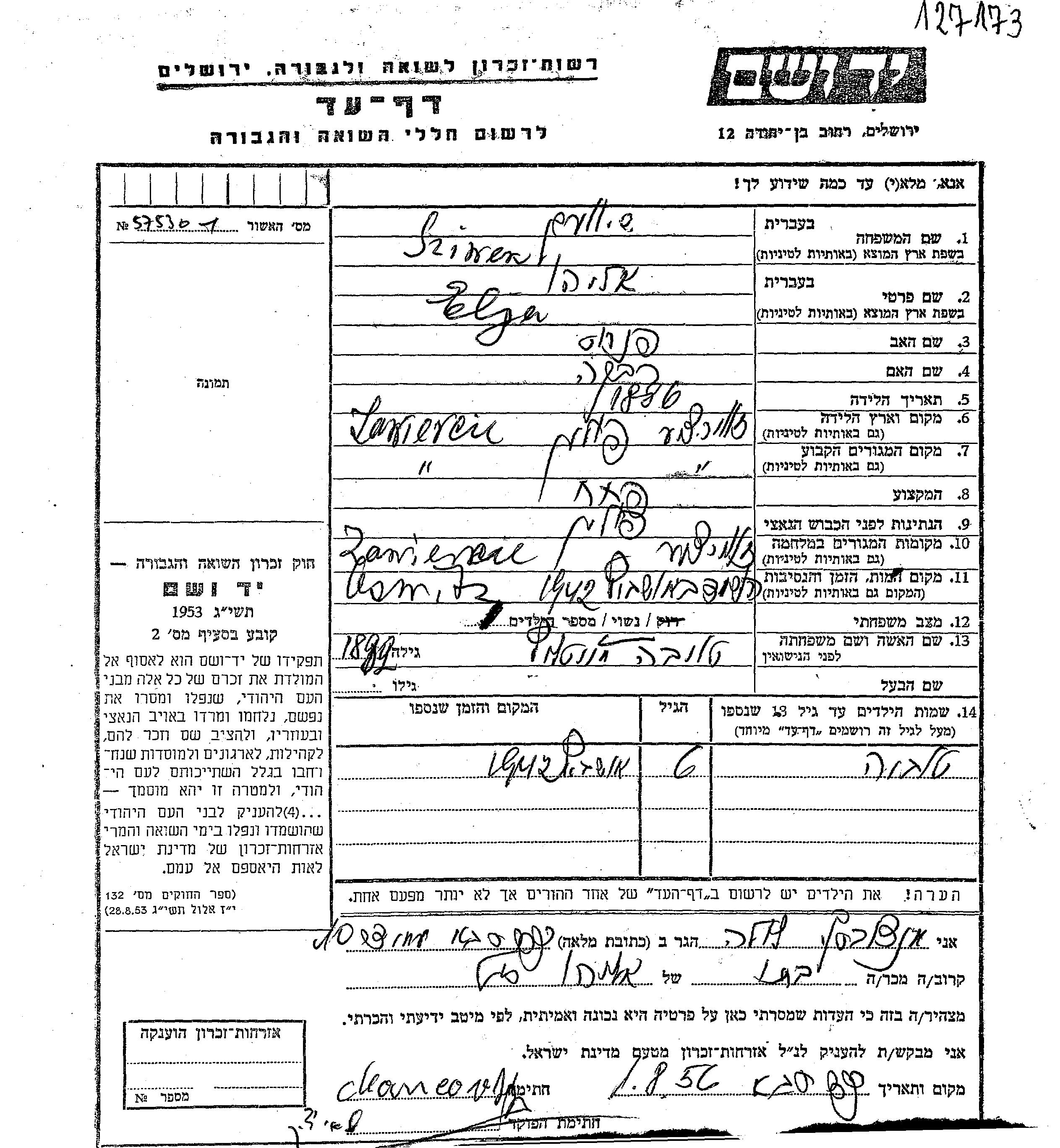 Elja wurde in der Schoah ermordet. Todesort: Auschwitz, Polen im Jahr 1942.