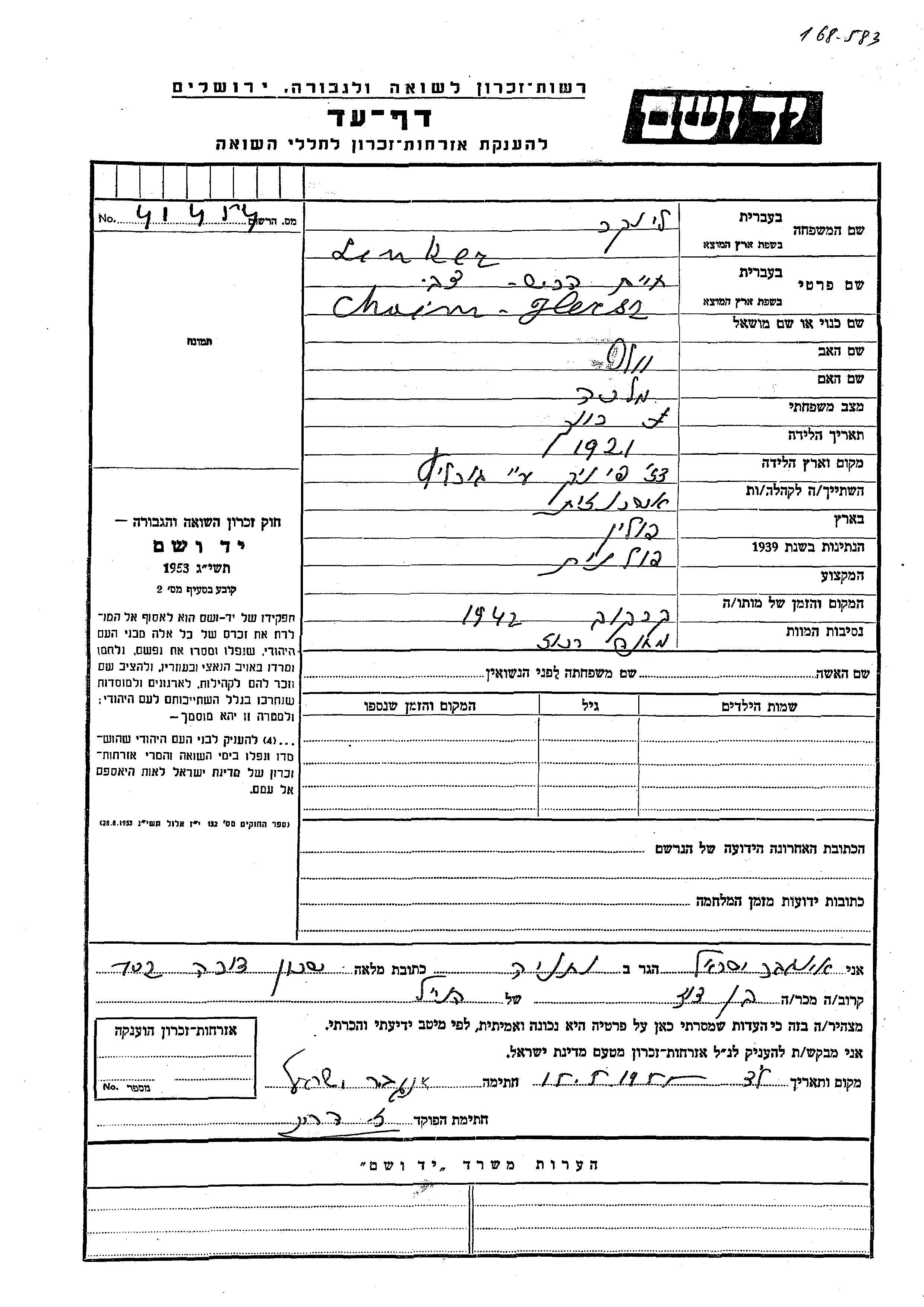 Chaim Hersz Tzvi Linker wurde im Jahr 1921 in Gorlice, Polen geboren. Er war der Sohn von Volf und Malka. Er war Ledig. Vor dem Zweiten Weltkrieg lebte er in Polen.