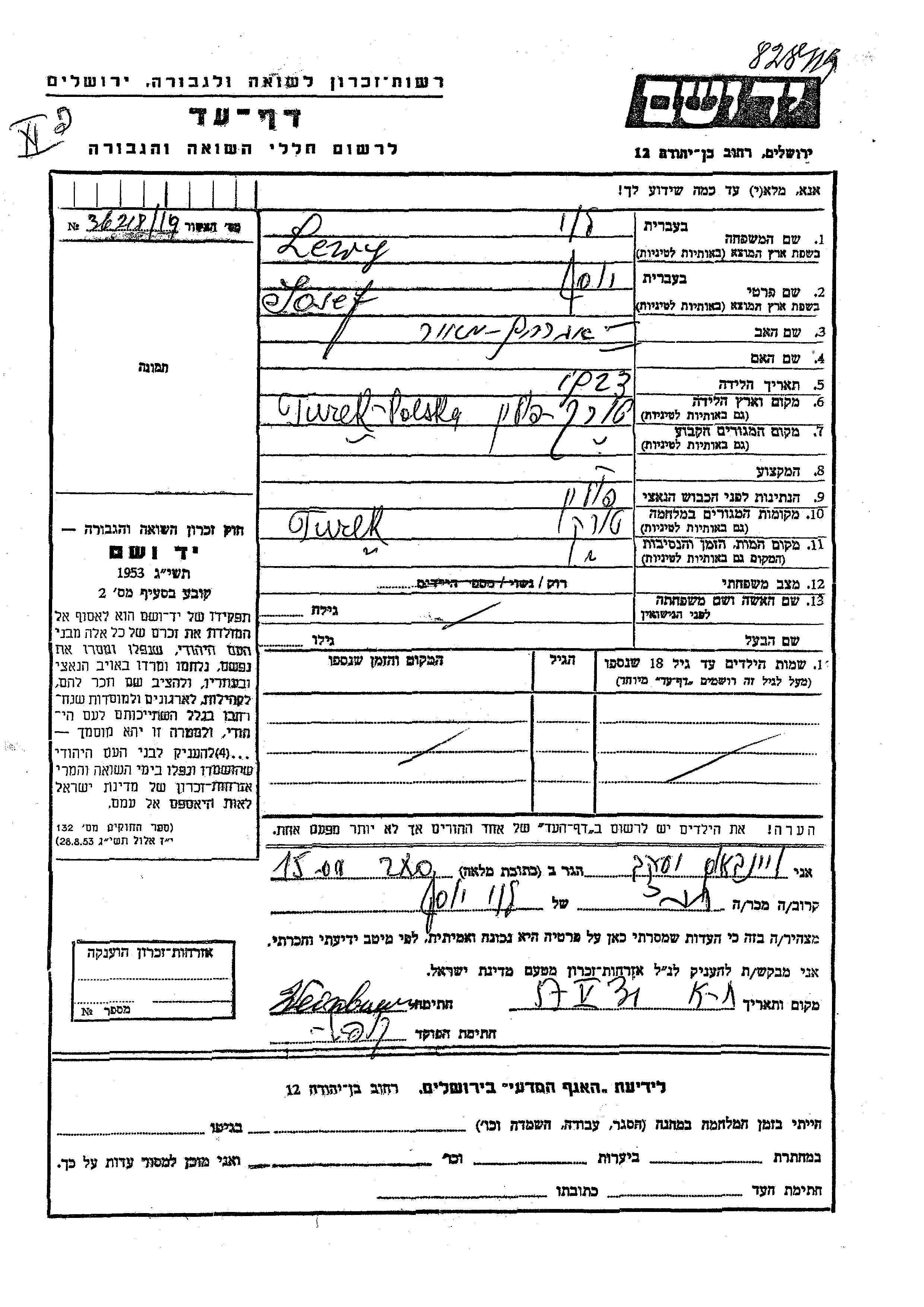 Josef Lewy wurde im Jahr 1923 in Turek, Polen geboren. Er war der Sohn von Avraham Meir. Er war Ledig. Vor dem Zweiten Weltkrieg lebte er in Turek, Polen. Während des Krieges war er in Turek, Polen.