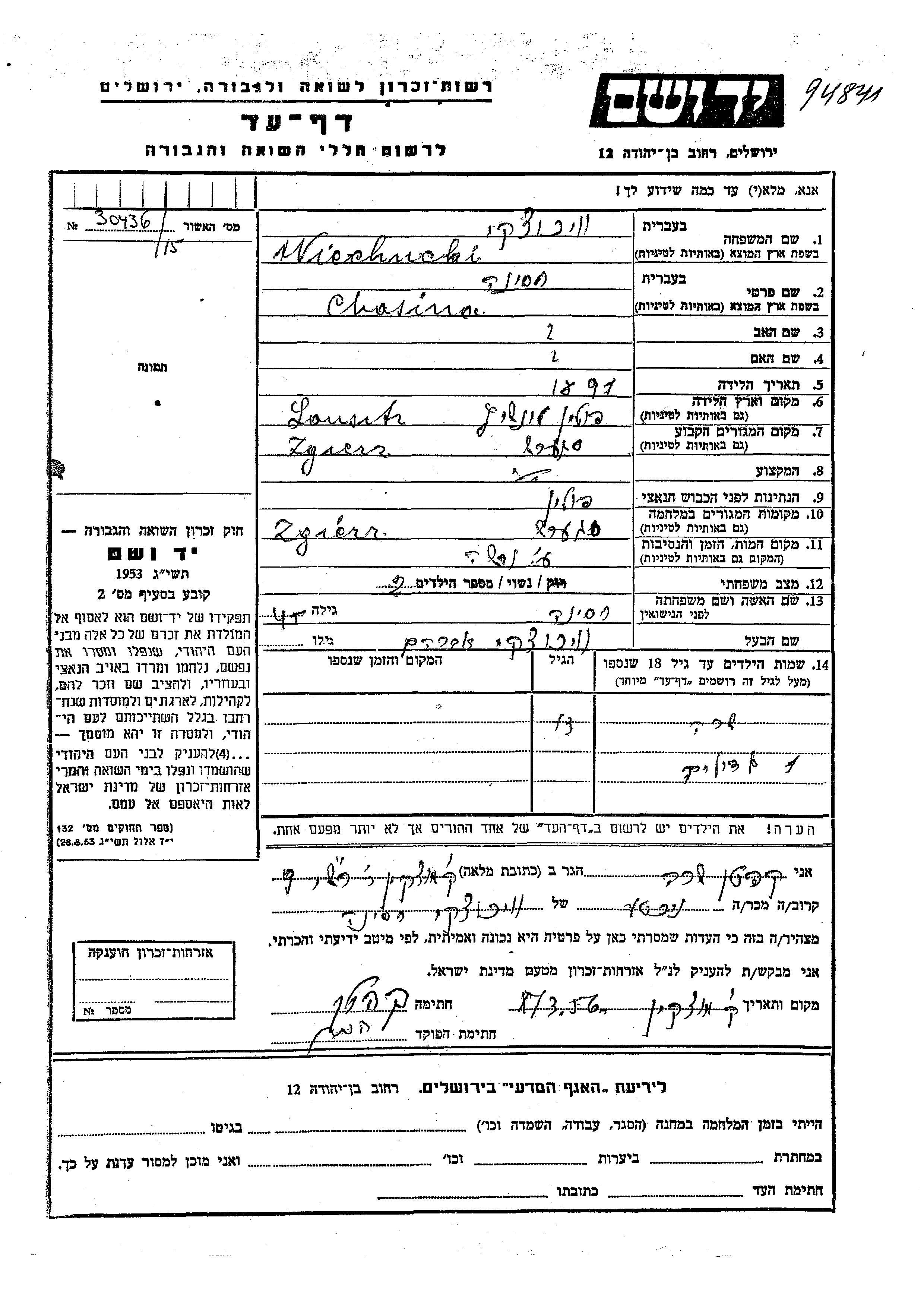 Chasina Wiechucki Vikhotzki wurde im Jahr 1891 in Loszice, Polen geboren. Sie war mit Avraham Verheiratet. Vor dem Zweiten Weltkrieg lebte sie in Zgierz, Polen. Während des Krieges war sie in Zgierz, Polen.