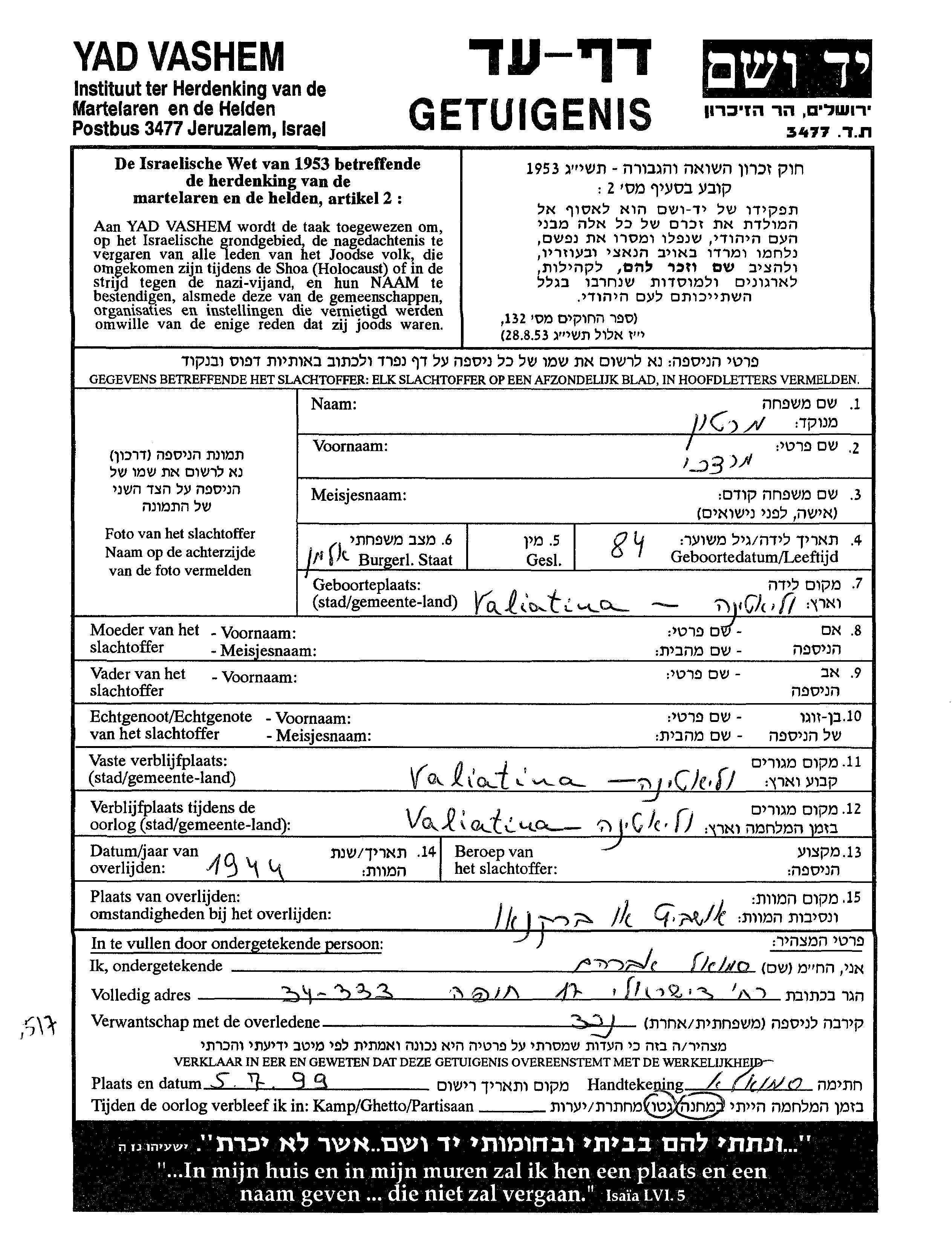 Mordekhai Marton wurde in Valiatin, Tschechoslowakei geboren. Er war Witwer. Vor dem Zweiten Weltkrieg lebte er in Valiatin, Tschechoslowakei. Während des Krieges war er in Valiatin, Tschechoslowakei.