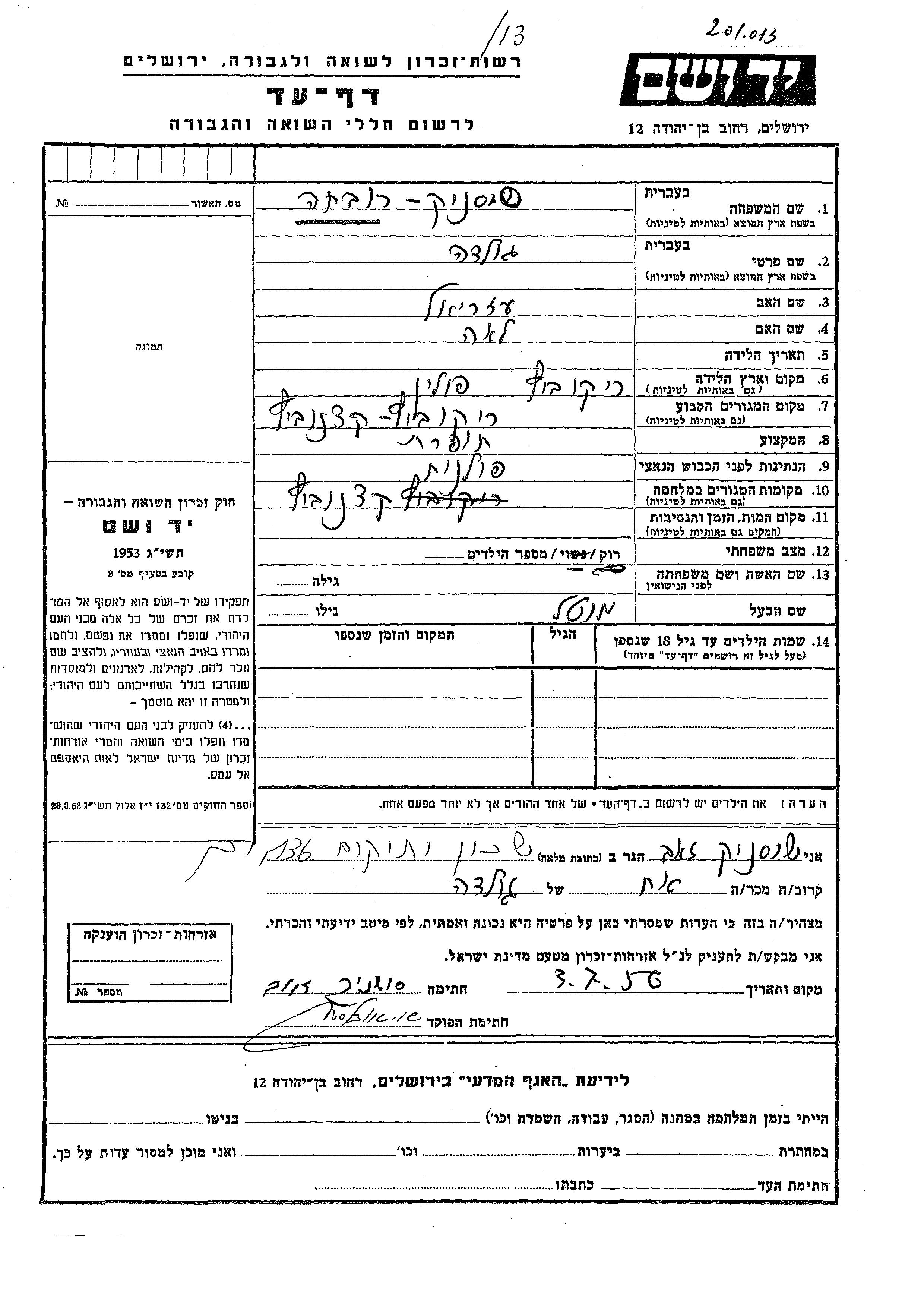 Golda Sosnik Rubakha, geb. Sosnik wurde in Rakowiec, Polen geboren. Sie war die Tochter von Azriel und Lea. Sie war Schneiderin und mit Motel Verheiratet. Vor dem Zweiten Weltkrieg lebte sie in Koczanowicze, Polen. Während des Krieges war sie in Koczanowicze, Polen.