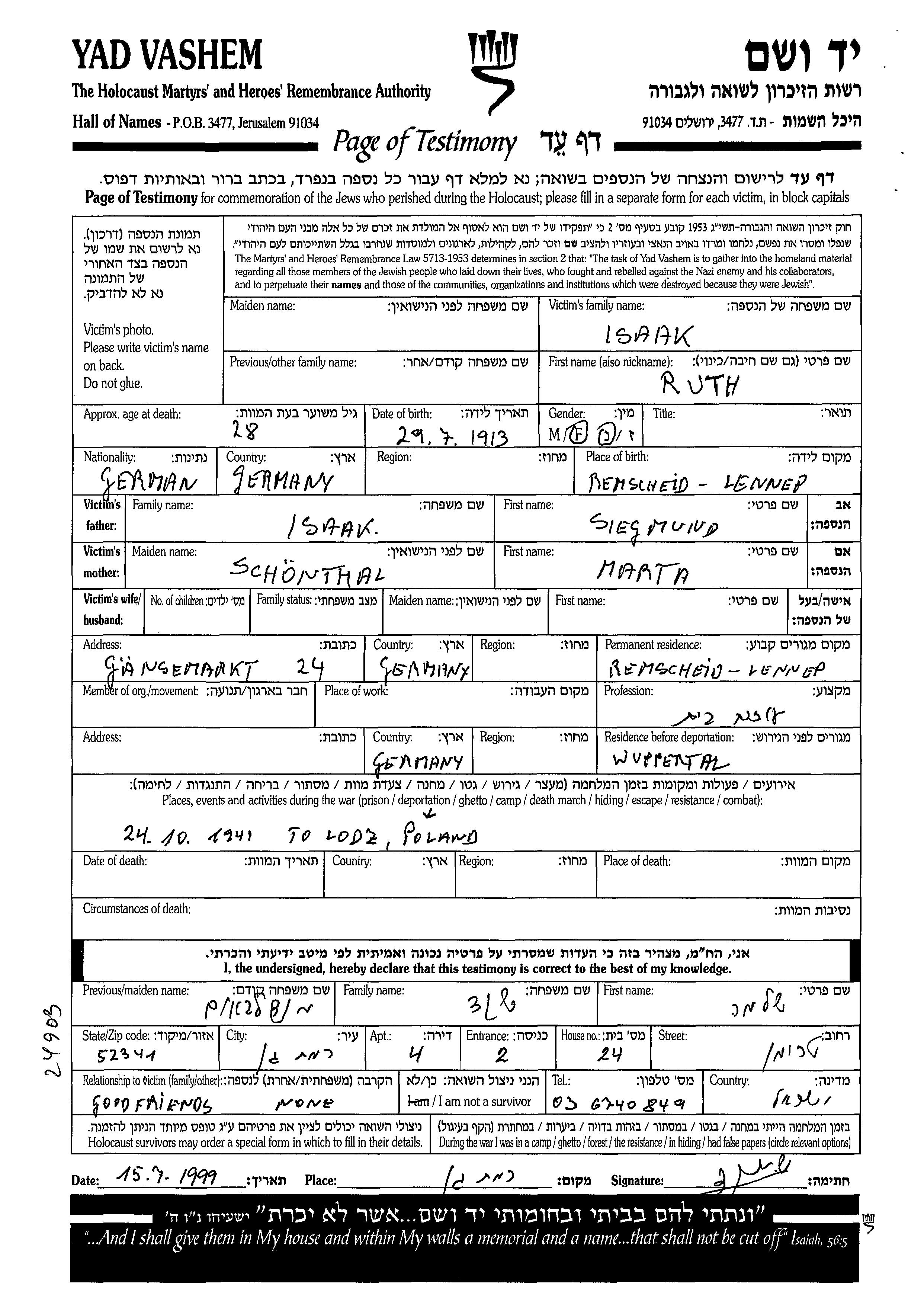 Ruth wurde in der Schoah ermordet. Todesort: unbekannt im Jahr 1941.