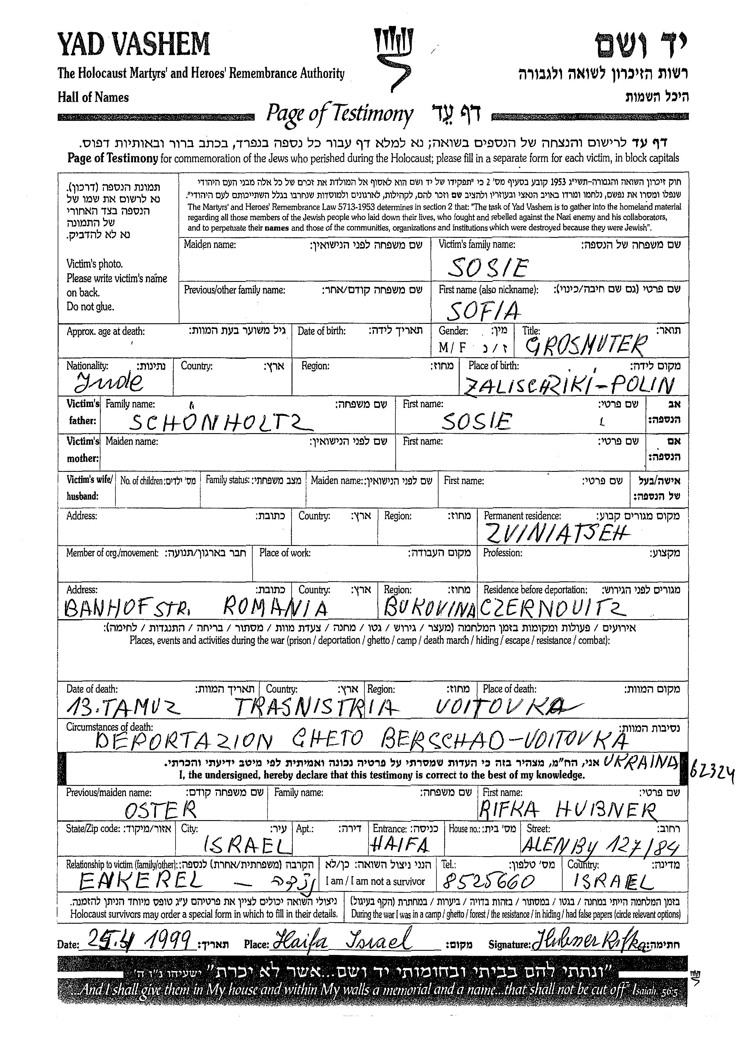 Aufenthaltsort während des Krieges/Schoah