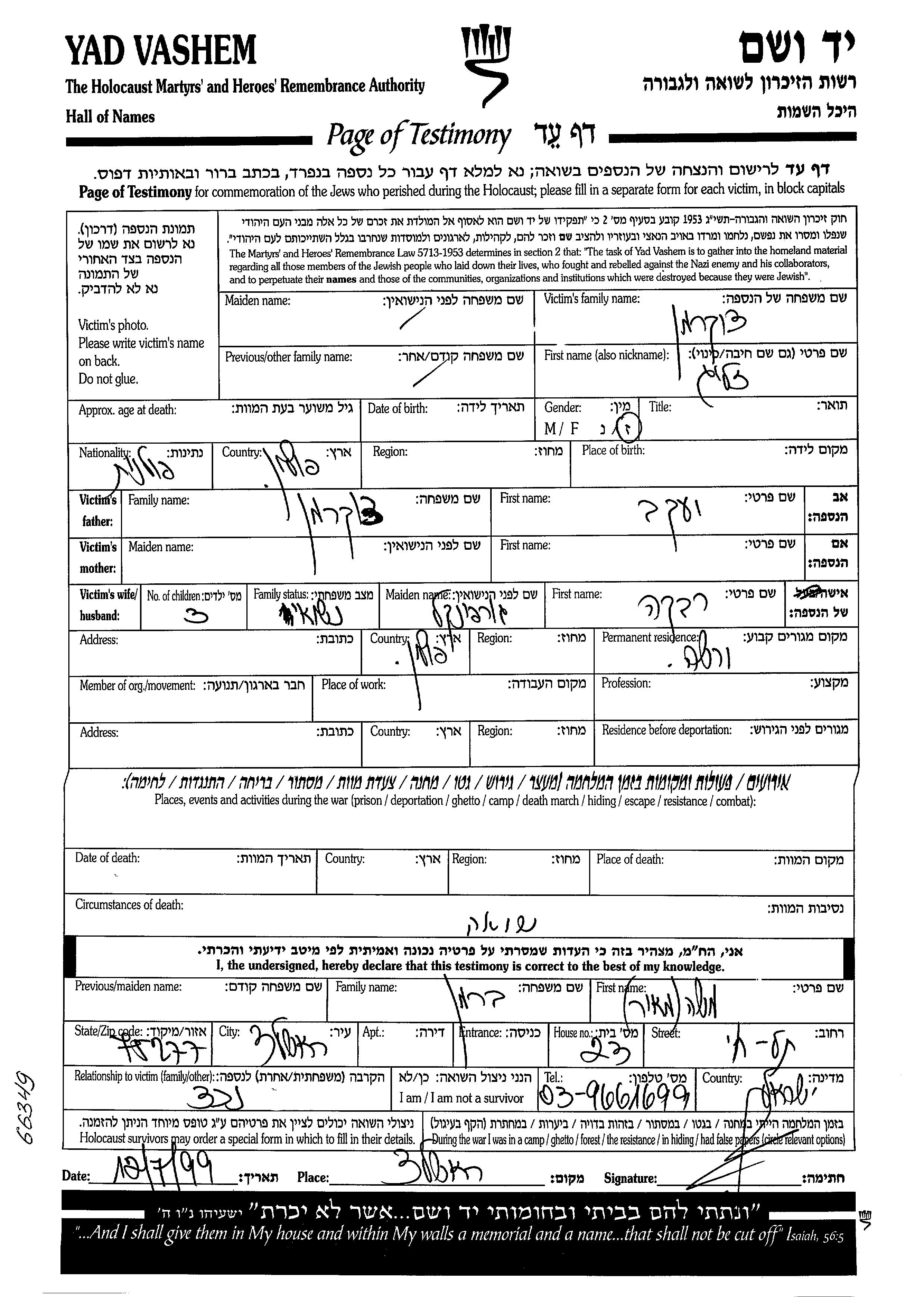 Tzukerman Zelig Warszawa, Polen Gedenkblatt