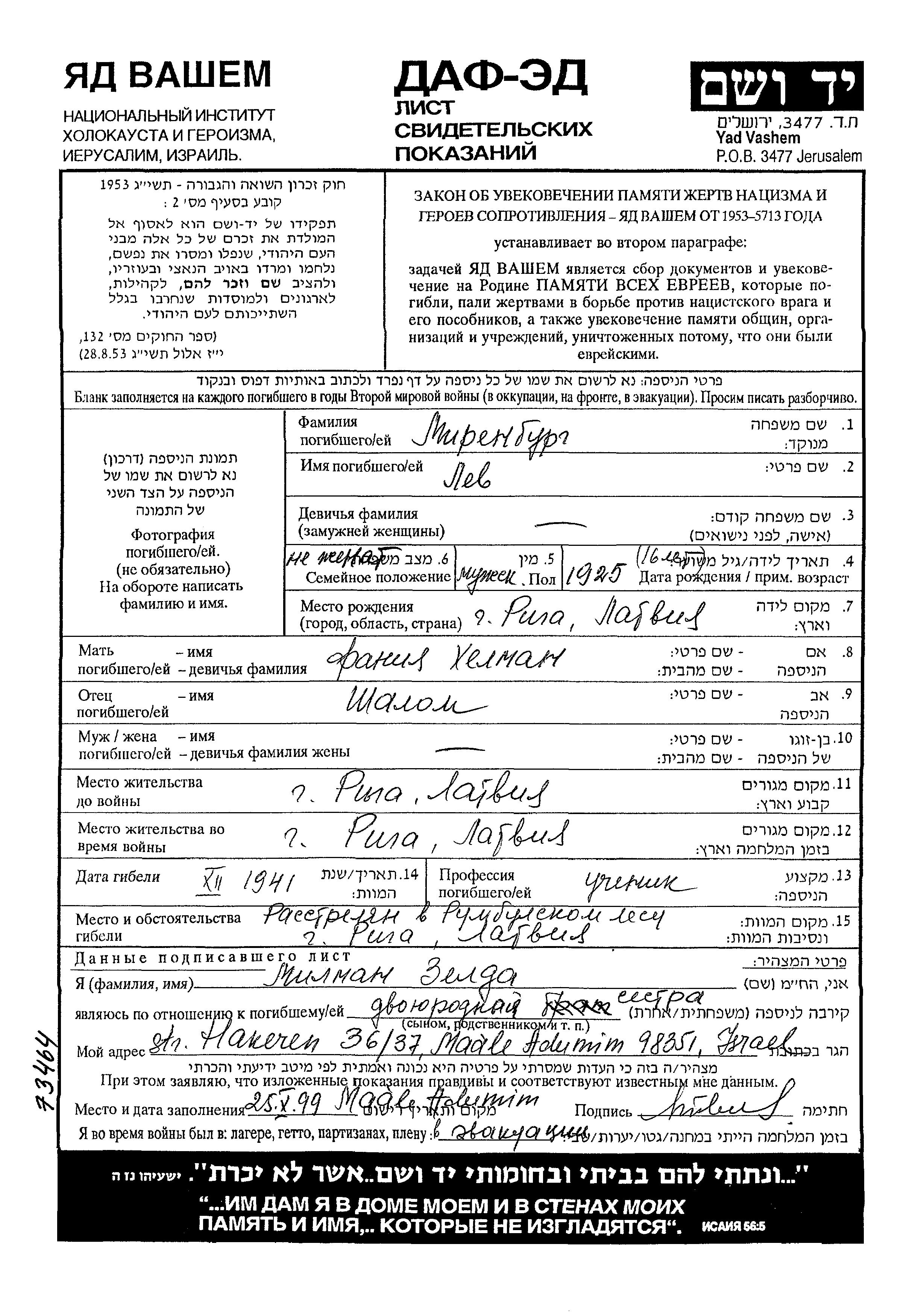 Lev wurde in der Schoah ermordet. Todesort: Rumbuli, Lettland im Jahr 12/1941.