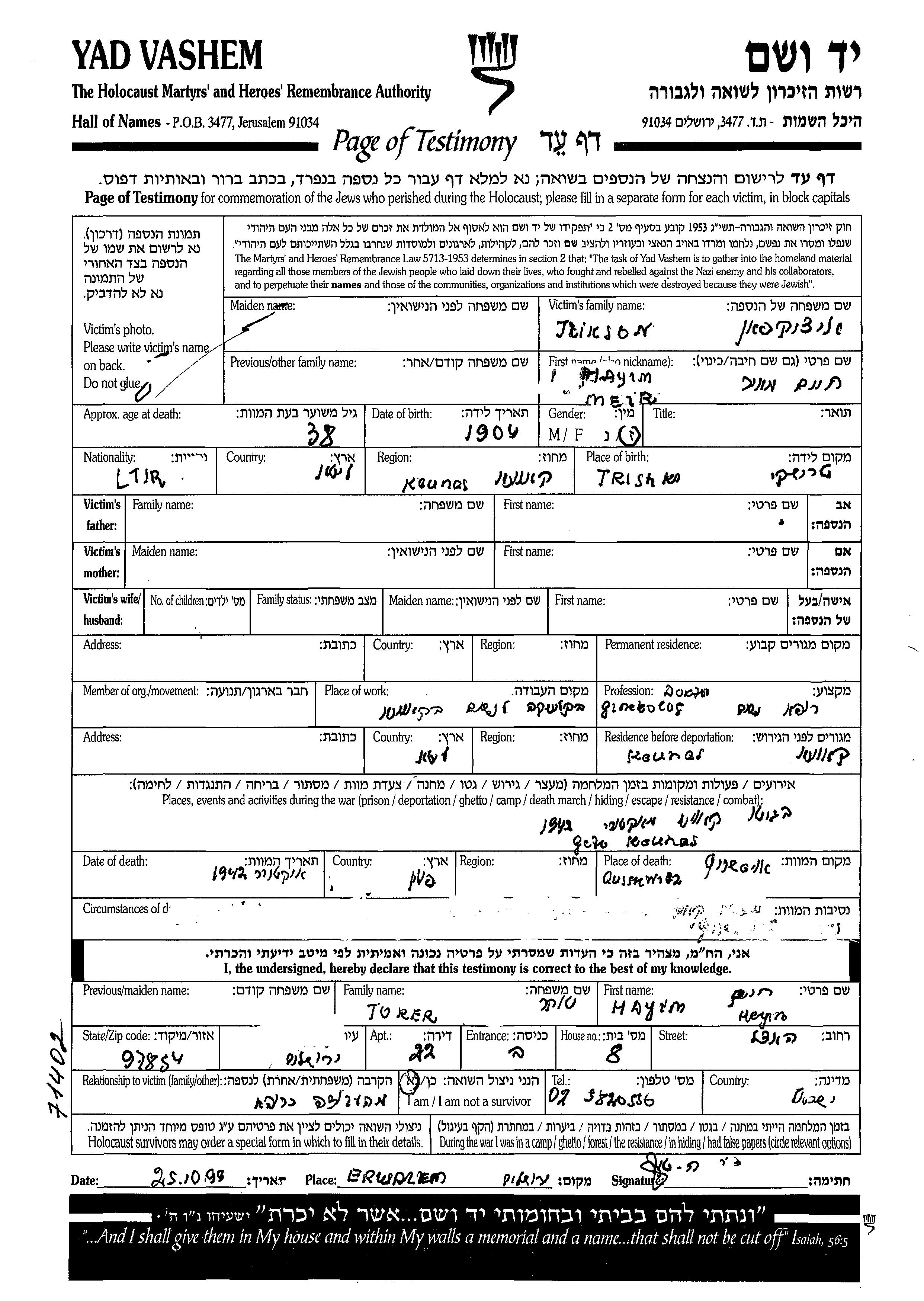 Hayim Meir wurde in der Schoah ermordet. Todesort: Auschwitz, Polen im Jahr 1942.