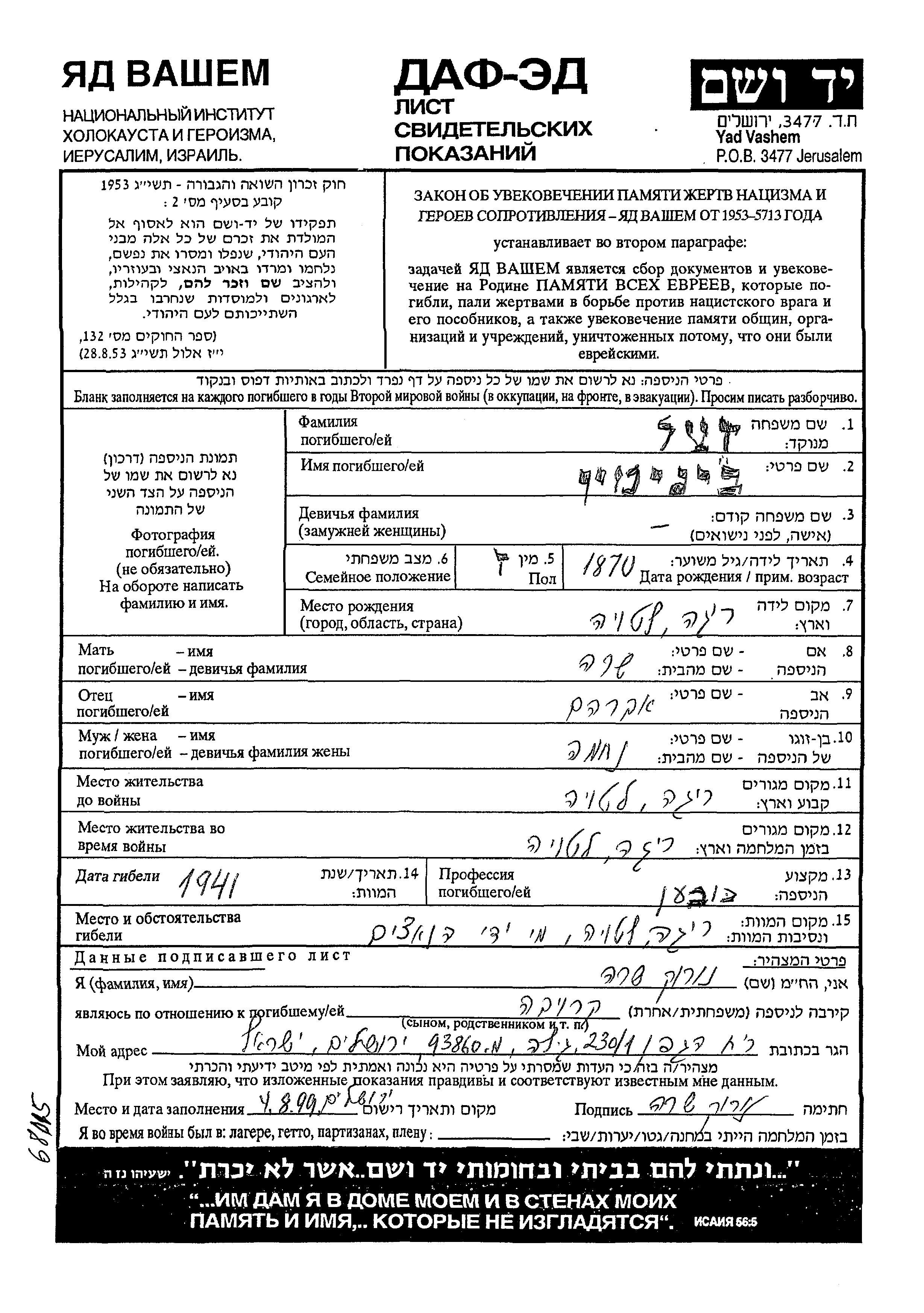 Beniamin wurde in der Schoah ermordet. Todesort: Riga, Lettland im Jahr 1941.
