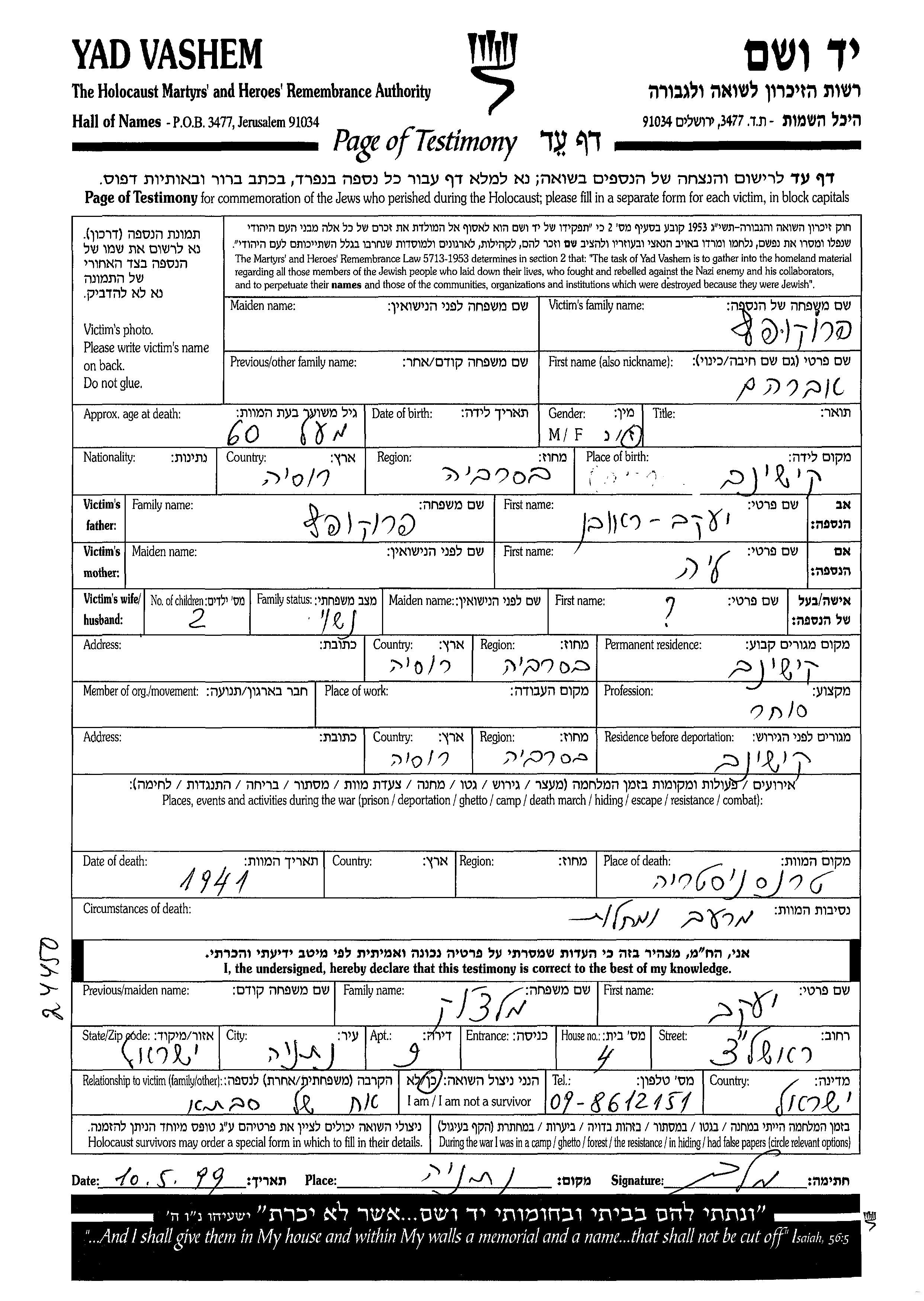 Avraham wurde in der Schoah ermordet. Todesort: Transnistria, Ukraine (UdSSR) im Jahr 1941.