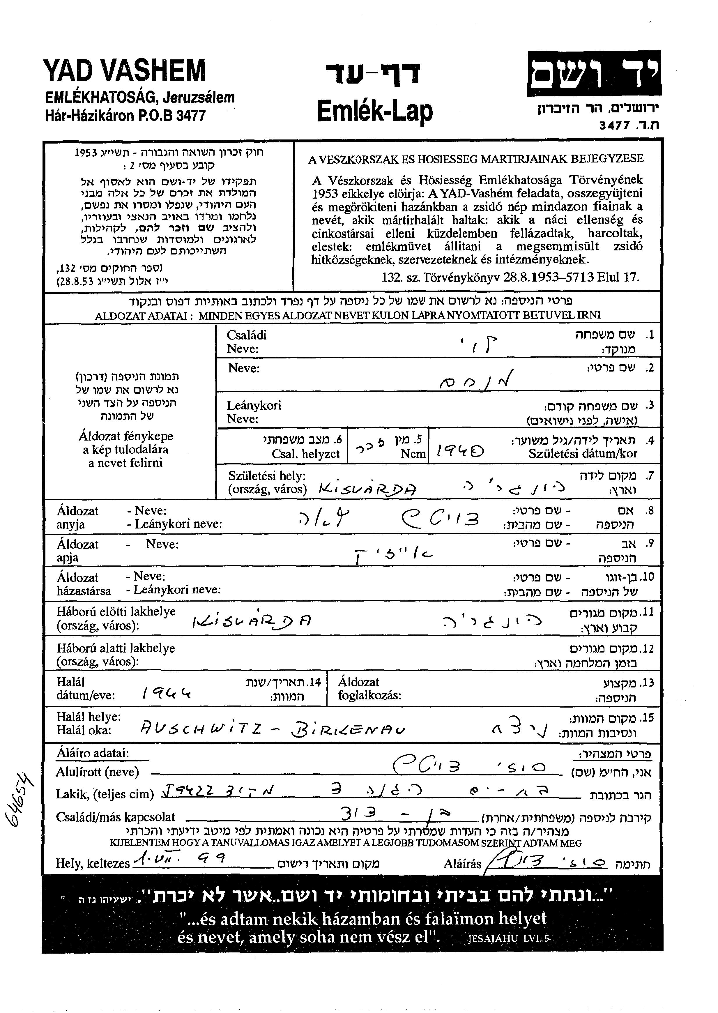 Menakhem wurde in der Schoah ermordet. Todesort: Auschwitz, Polen im Jahr 1944.