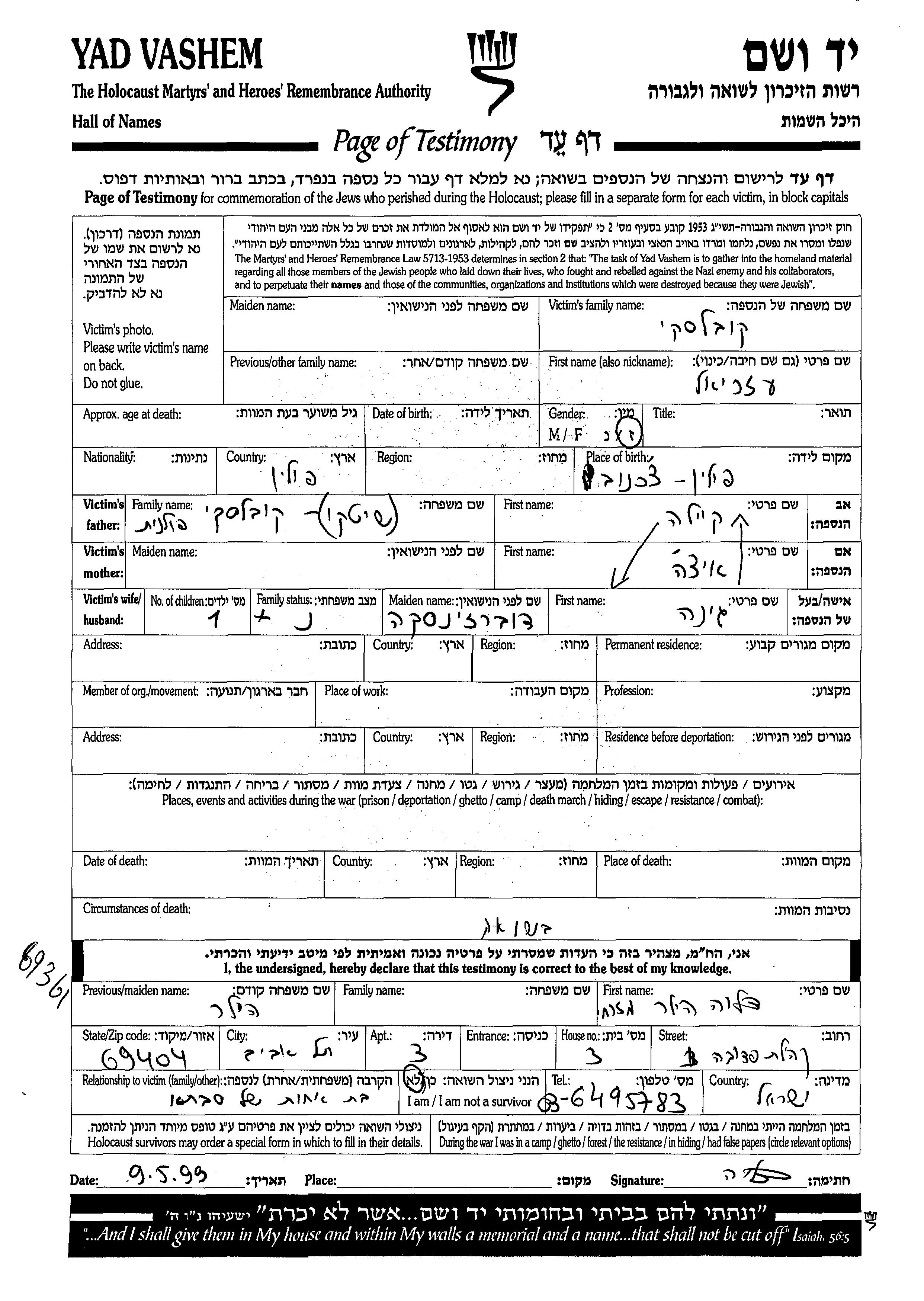 Azriel wurde in der Schoah ermordet.
