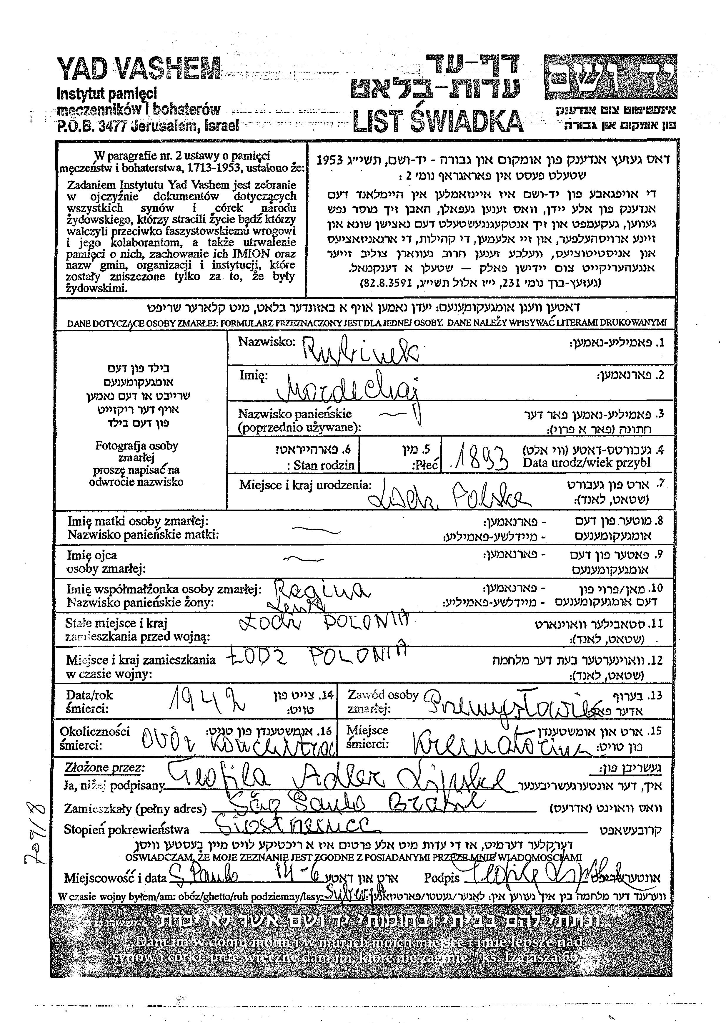 Suche nach einem Todesjahr im Zeitraum der Holocaust: 1933 bis 1945. Bitte wählen Sie 'Exakt' im Auswahlmenü, um nur nach einem einzelnen Jahr zu suchen, alternativ können Sie die flexibleren Optionen '+/- 2 Jahre' oder '+/- 5 Jahre' wählen.