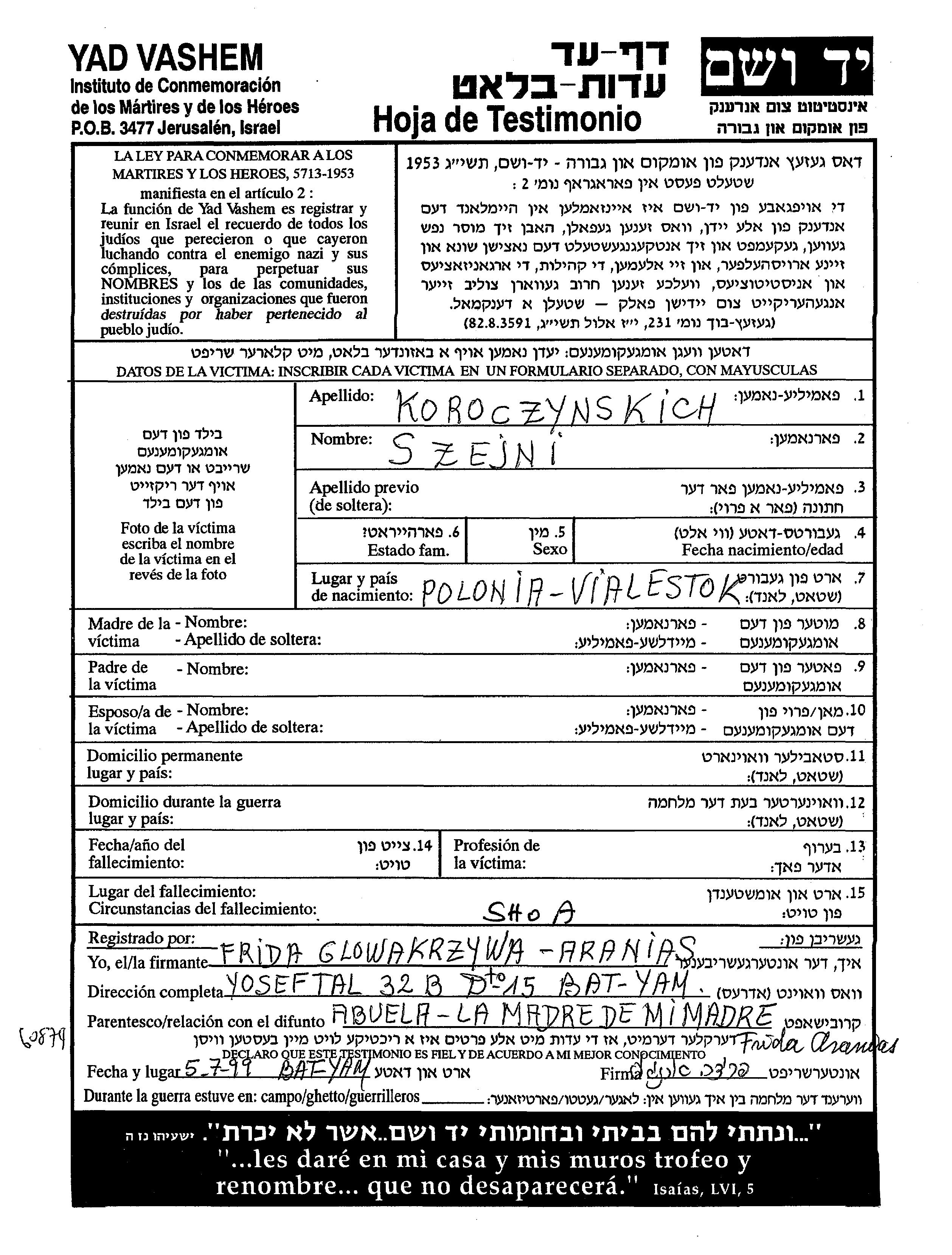 Szejni Koroczynskich wurde in Bialistok, Polen geboren. Sie war Verheiratet.