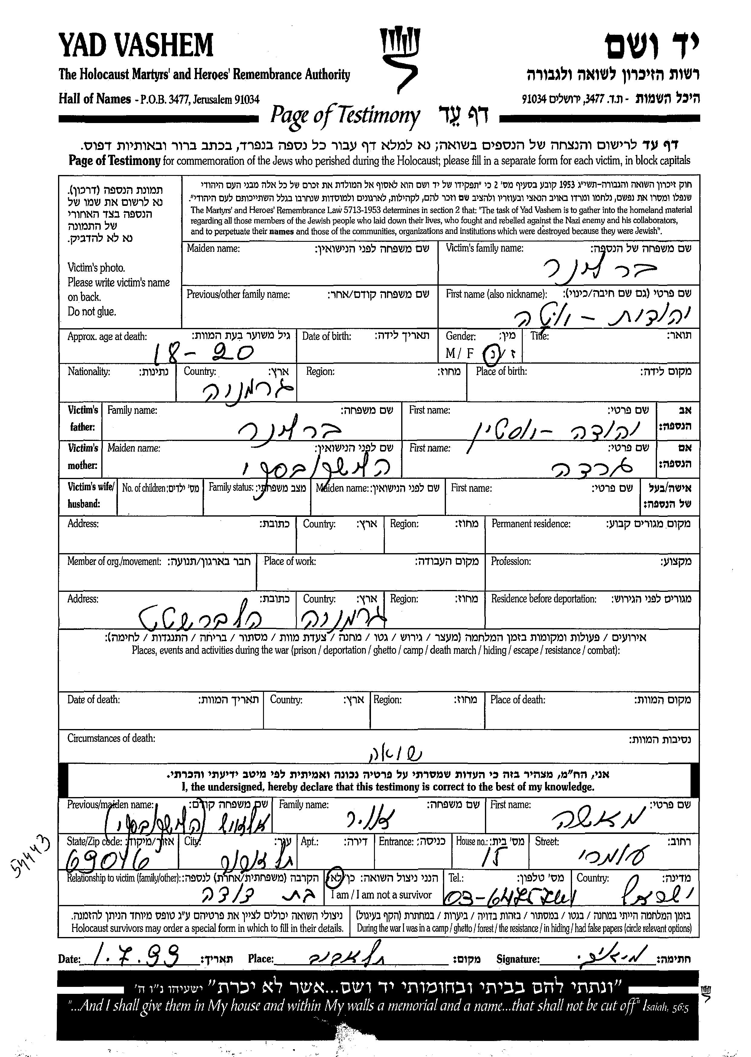 Suche nach einem Todesjahr im Zeitraum der Holocaust: 1933 bis 1945. Bitte wählen Sie 'Exakt' im Auswahlmenü, um nur nach einem einzelnen Jahr zu suchen, alternativ können Sie die flexibleren Optionen '+/- 2 Jahre' oder '+/- 5 Jahre' wählen.