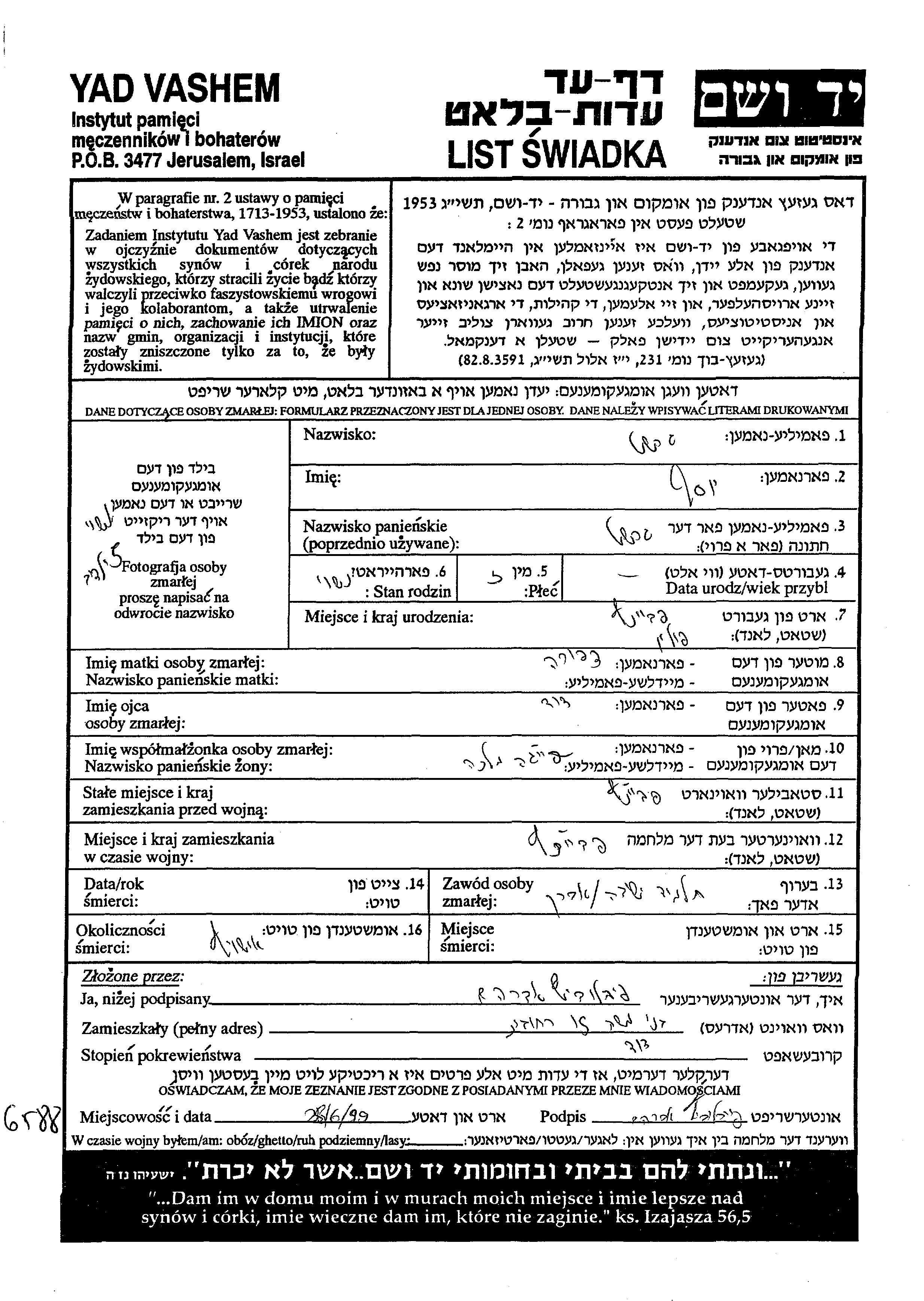 Gersht Yosef Pabianitz, Polen Gedenkblatt