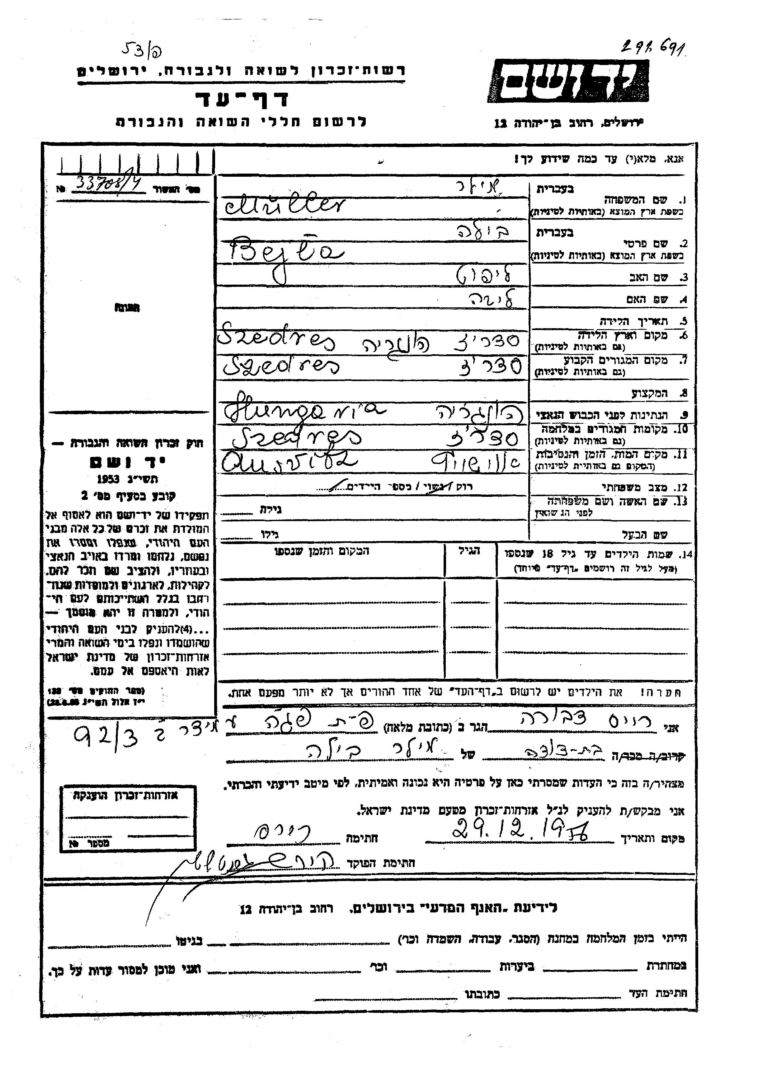 Bejle Miller wurde in Szedres, Ungarn geboren. Sie war die Tochter von Lipot und Liba. Sie war Ledig. Vor dem Zweiten Weltkrieg lebte sie in Szedres, Ungarn. Während des Krieges war sie in Szedres, Ungarn.