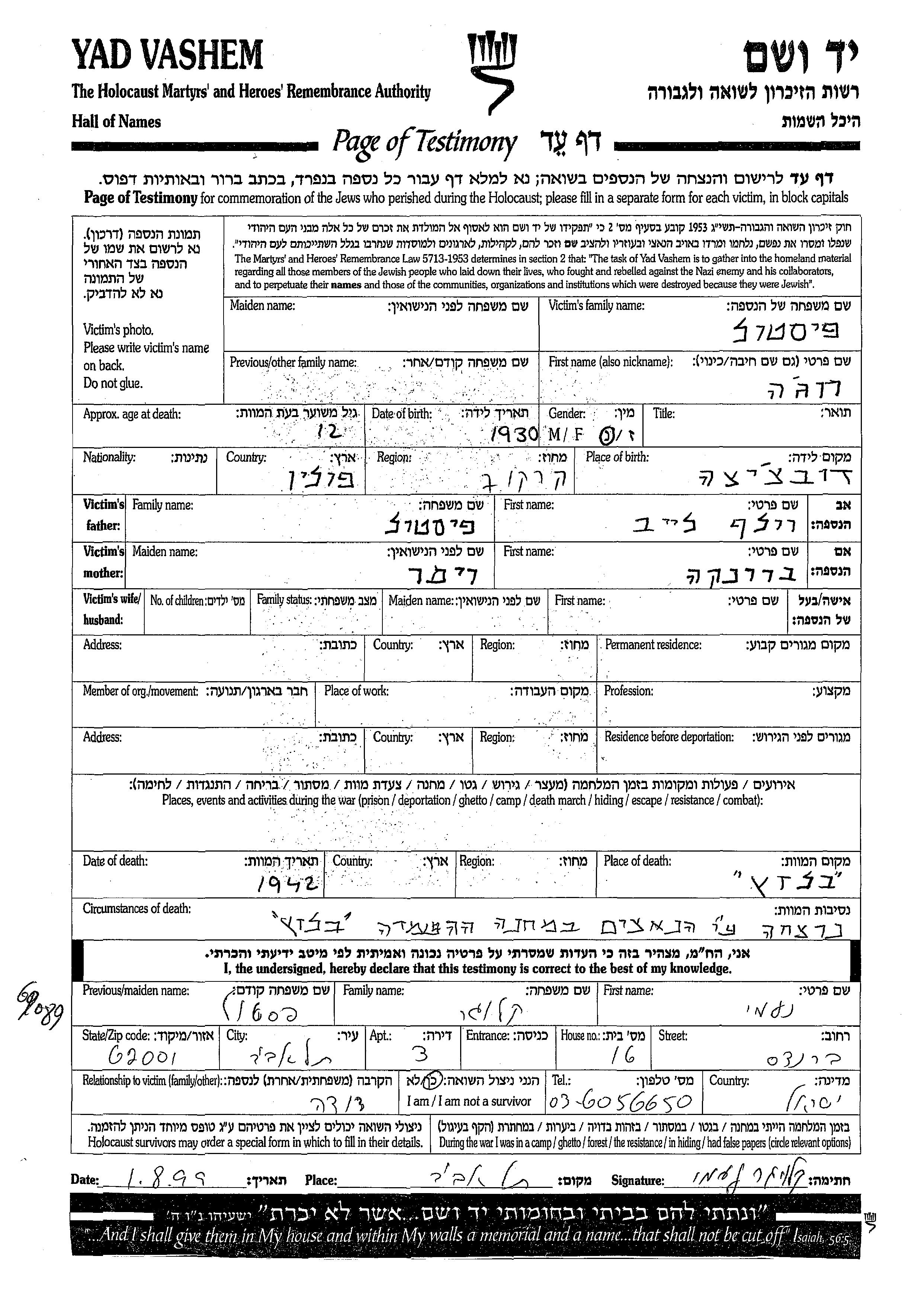 Roga wurde in der Schoah ermordet. Todesort: Belzec, Polen im Jahr 1942.