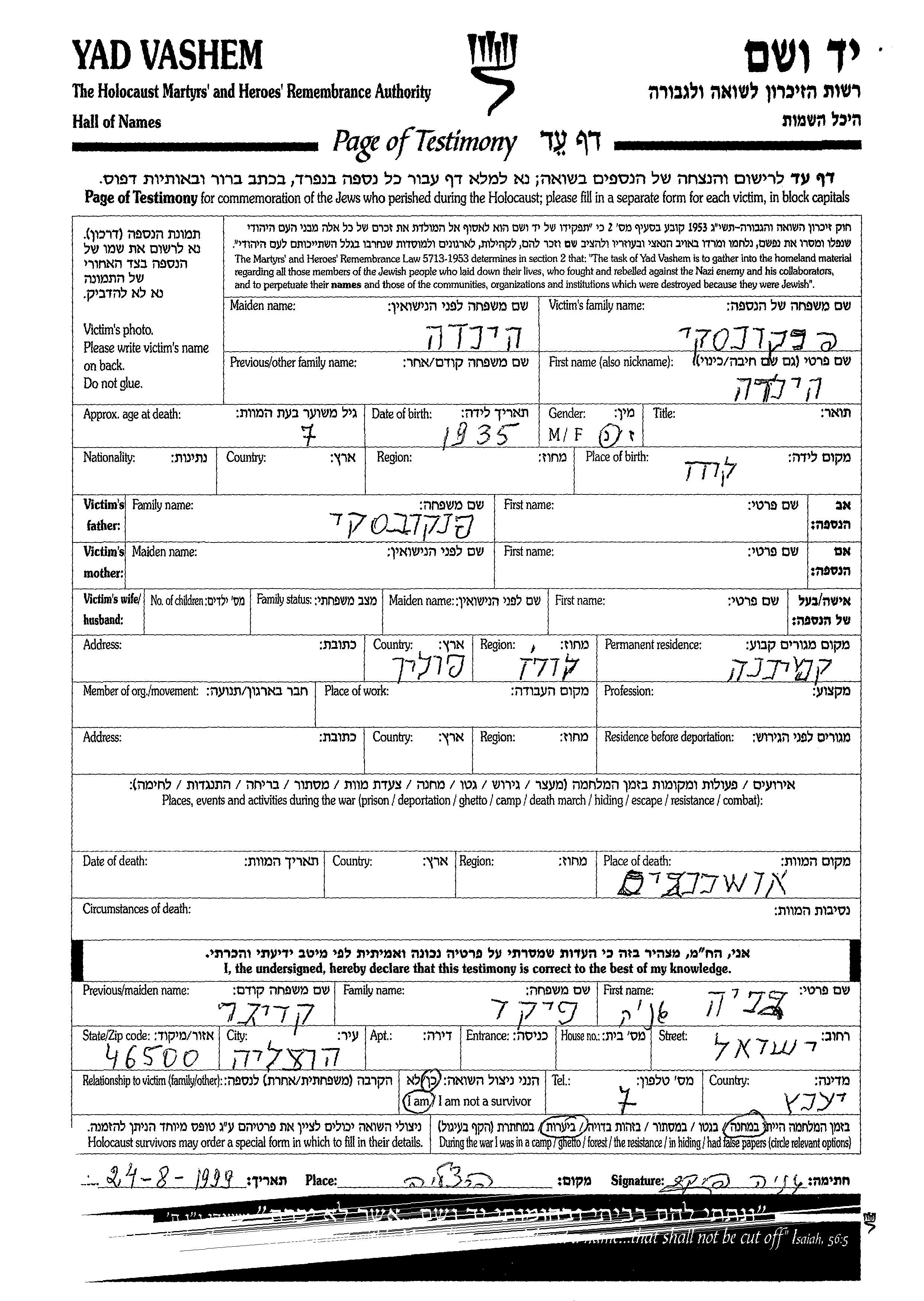 Suche nach einem Todesjahr im Zeitraum der Holocaust: 1933 bis 1945. Bitte wählen Sie 'Exakt' im Auswahlmenü, um nur nach einem einzelnen Jahr zu suchen, alternativ können Sie die flexibleren Optionen '+/- 2 Jahre' oder '+/- 5 Jahre' wählen.
