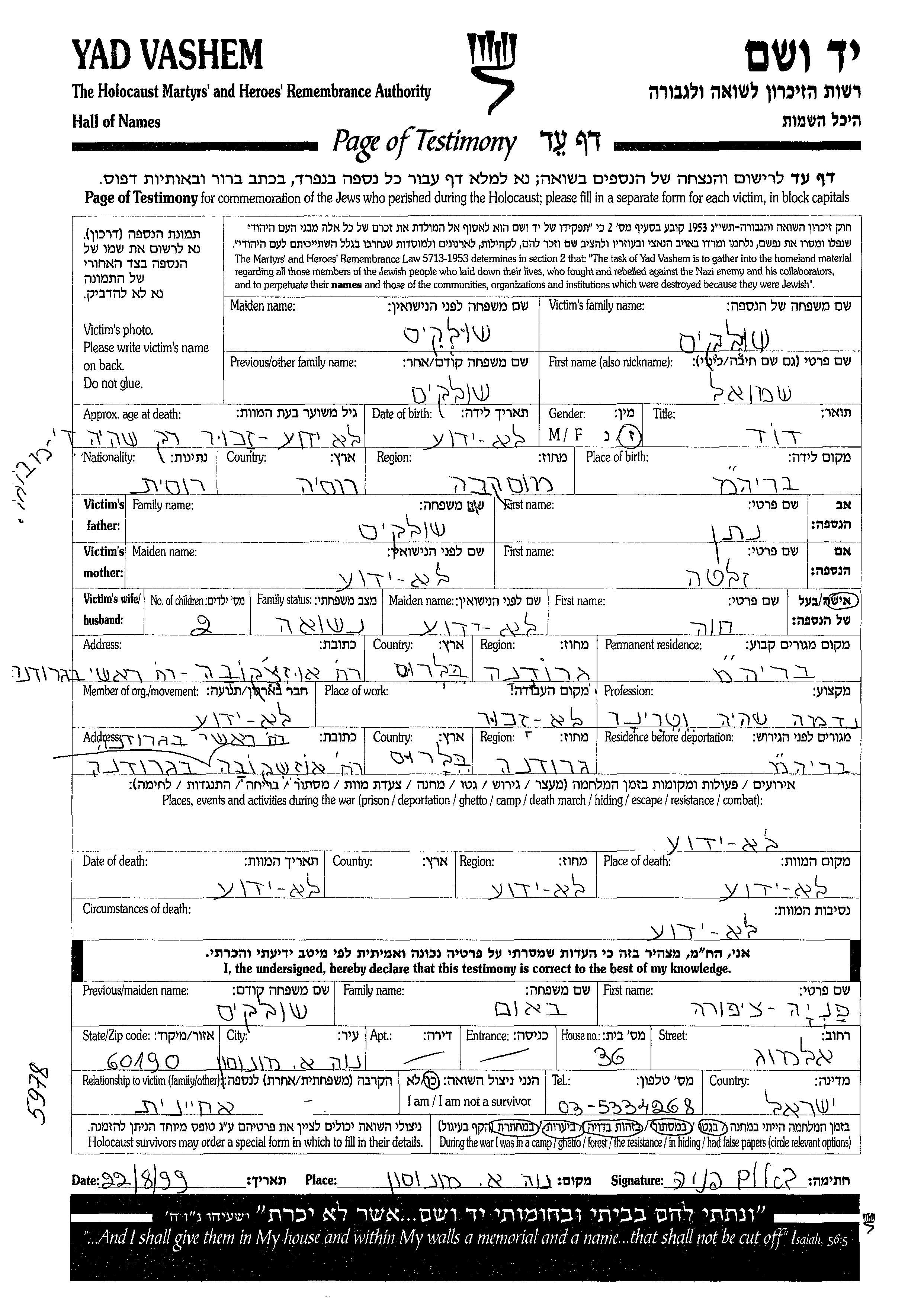 Shulkis Shmuel Grodno, Polen Gedenkblatt