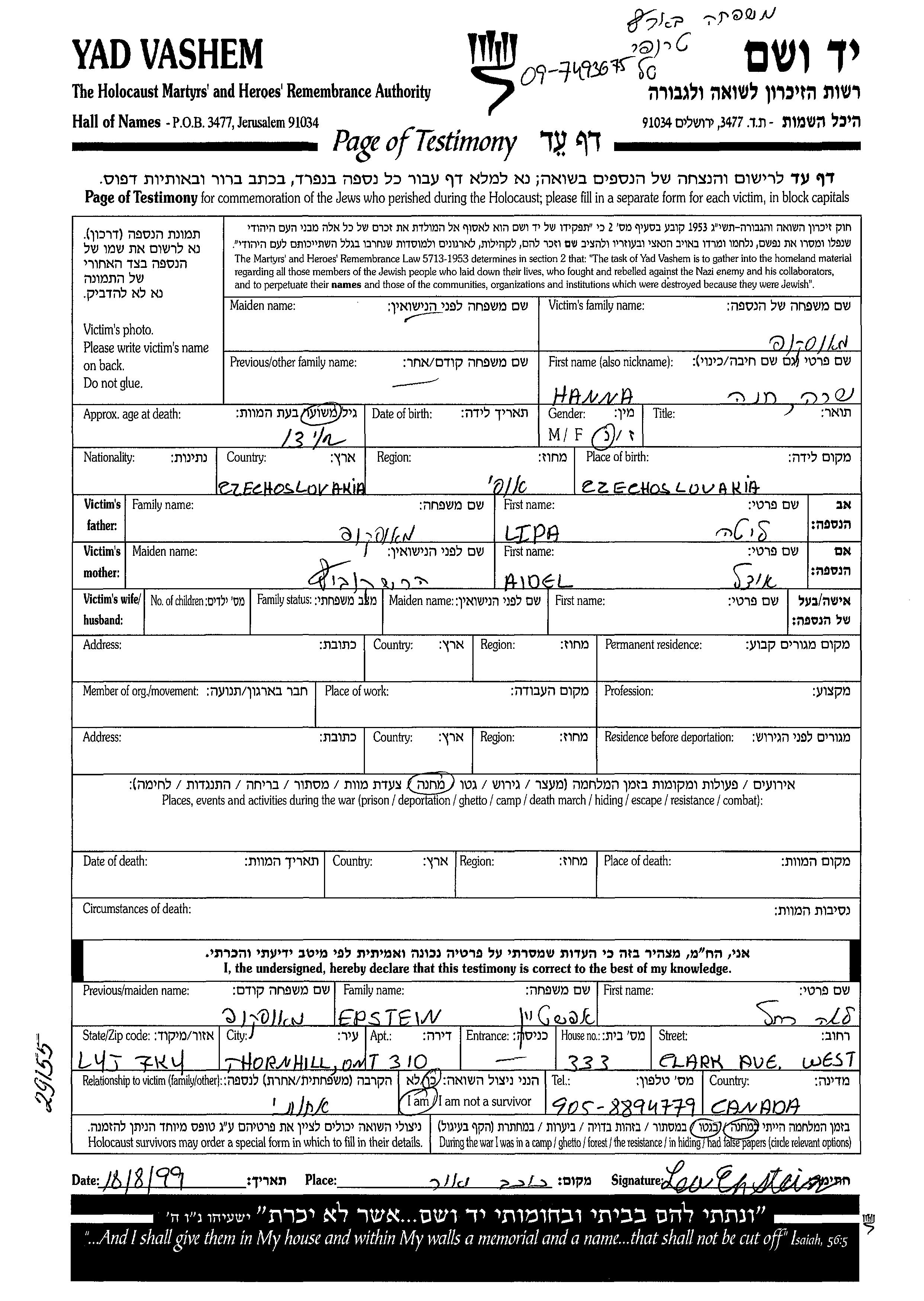 Hanna Sara Mauskop wurde in Osi, Tschechoslowakei geboren. Sie war die Tochter von Lipa und Aidel Idl.