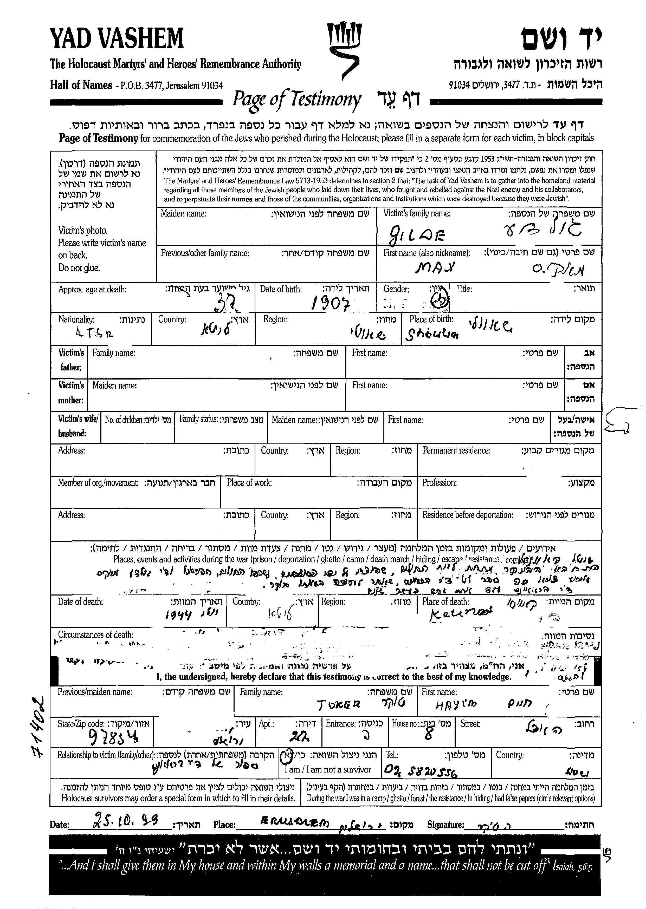 Max Gilde wurde im Jahr 1907 in Shauliai, Litauen geboren. Während des Krieges war er in Kaunas, Litauen.