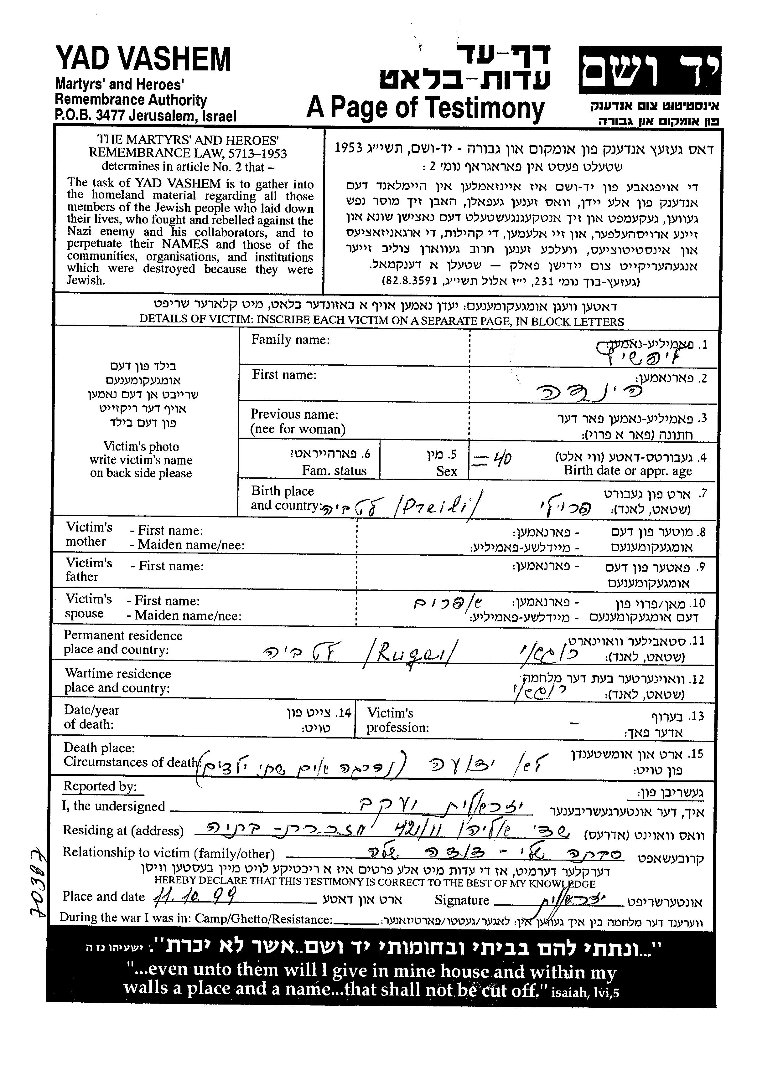 Lifshitz Hinda Rugaji, Lettland Gedenkblatt