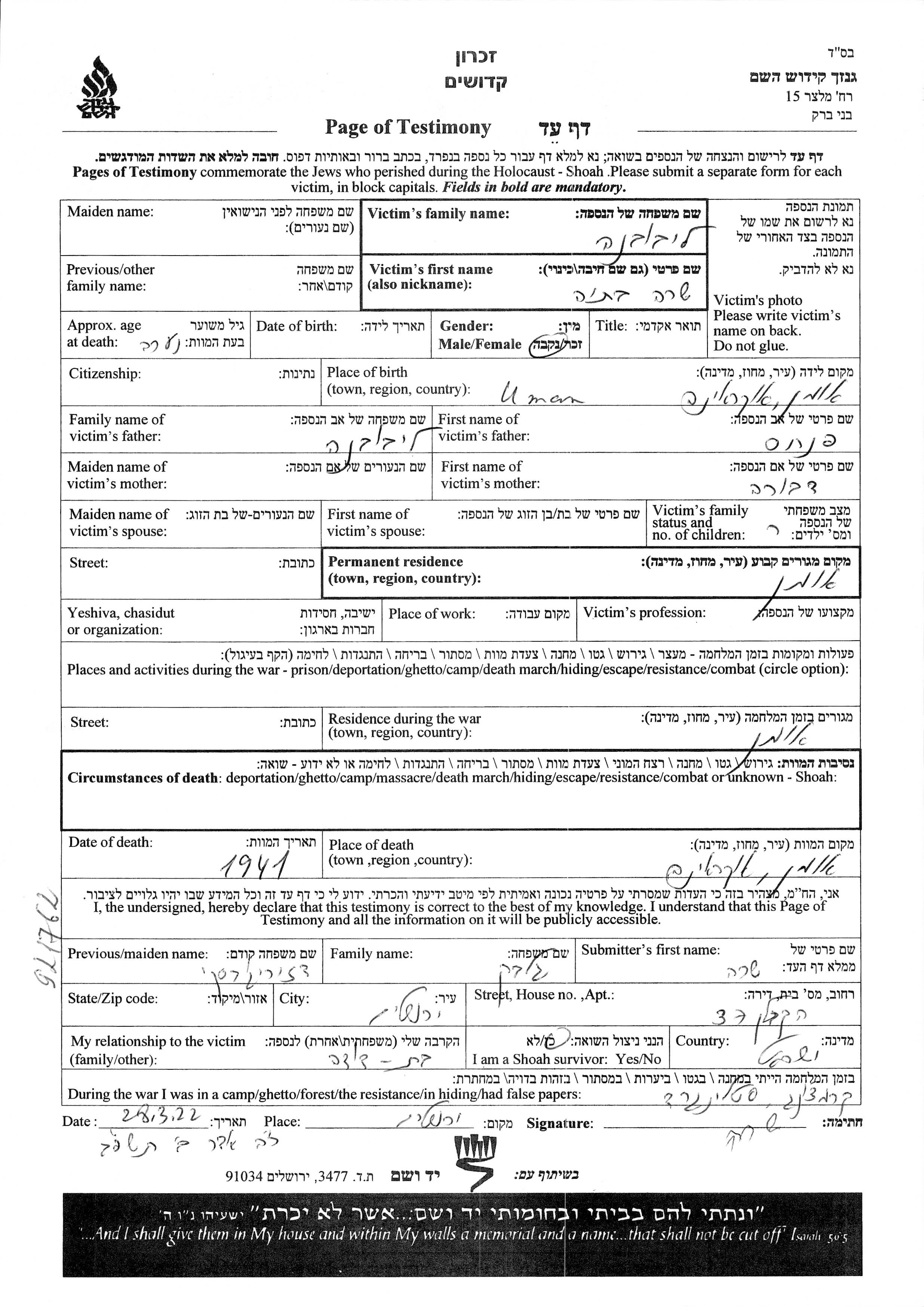 Libovne Sara Batia Uman, Ukraine (UdSSR) Gedenkblatt