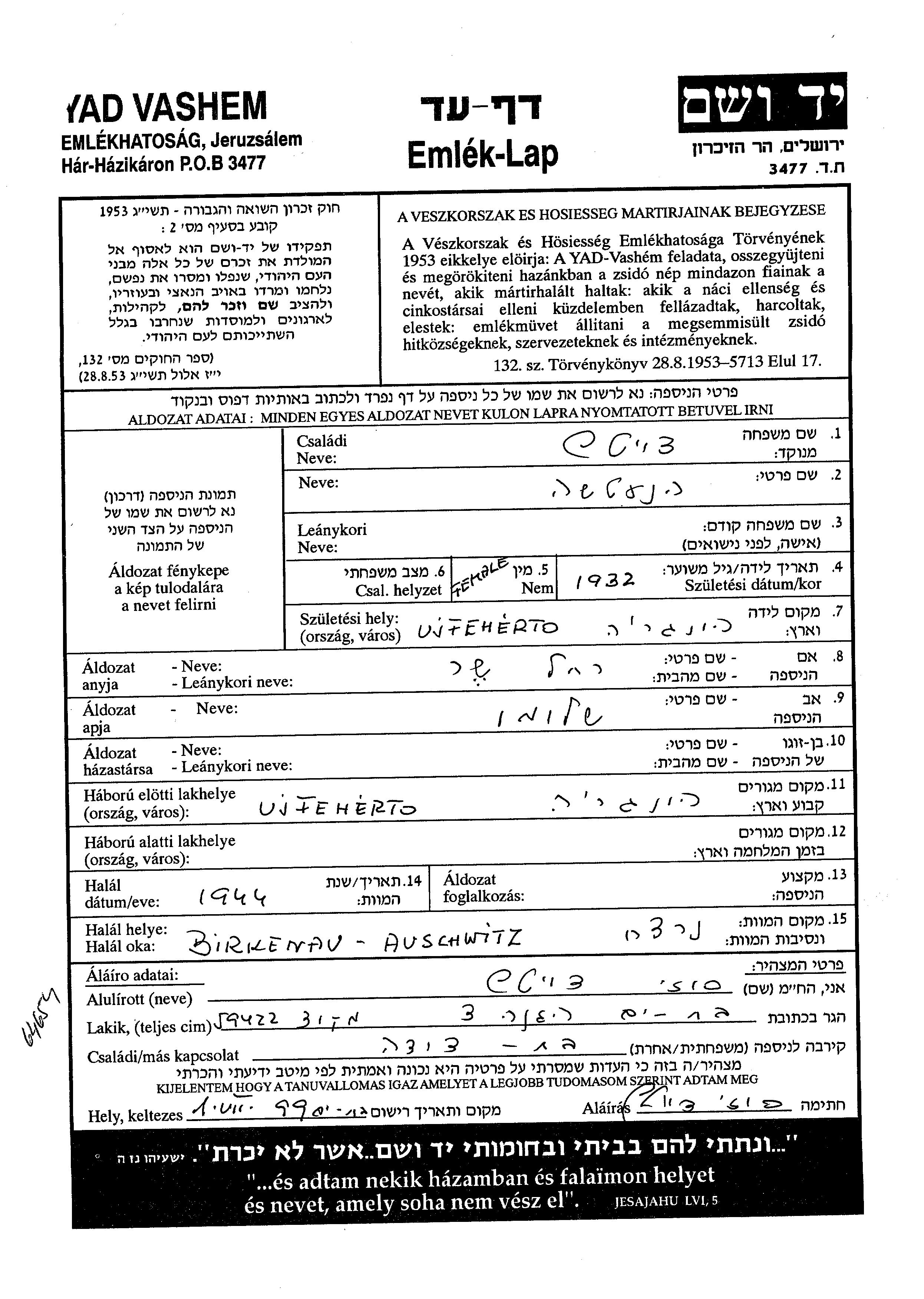 Yad Vashem - Gedenkblätter Sammlung