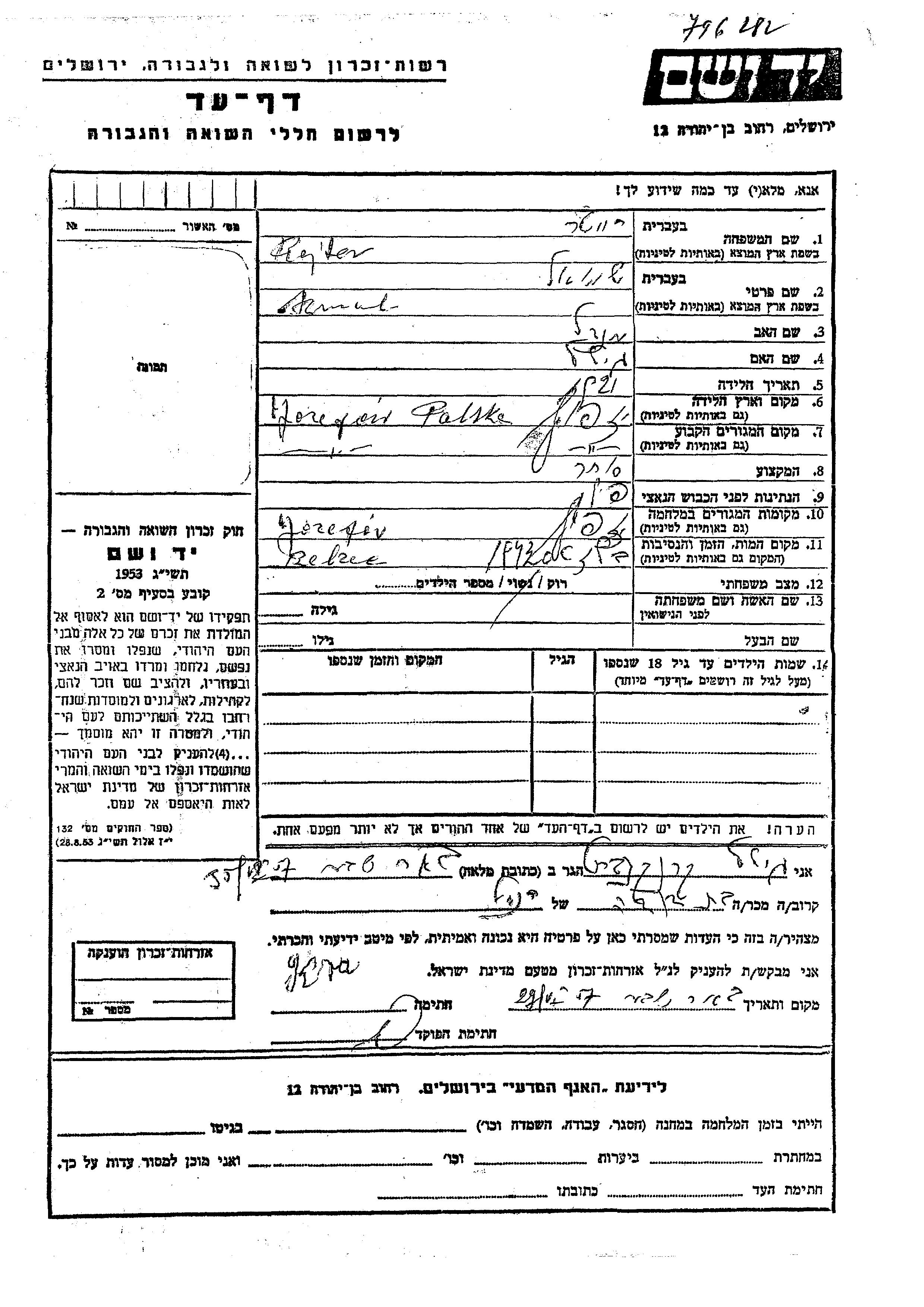 Rejter Szmuel 1921 Jozefow, Polen Gedenkblatt