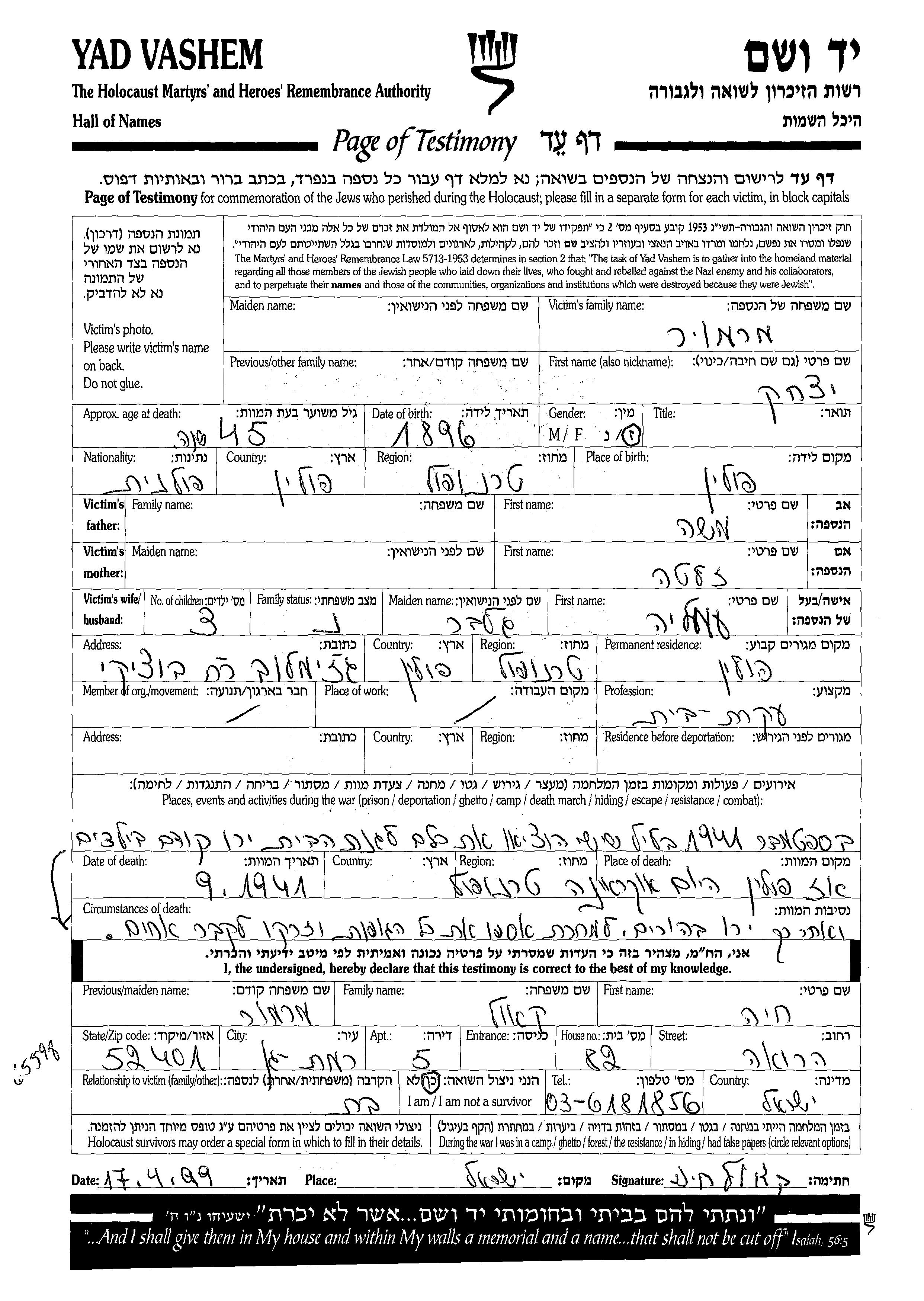 Yitzkhak wurde in der Schoah ermordet. Todesort: Tarnopol, Polen im Jahr 1941.