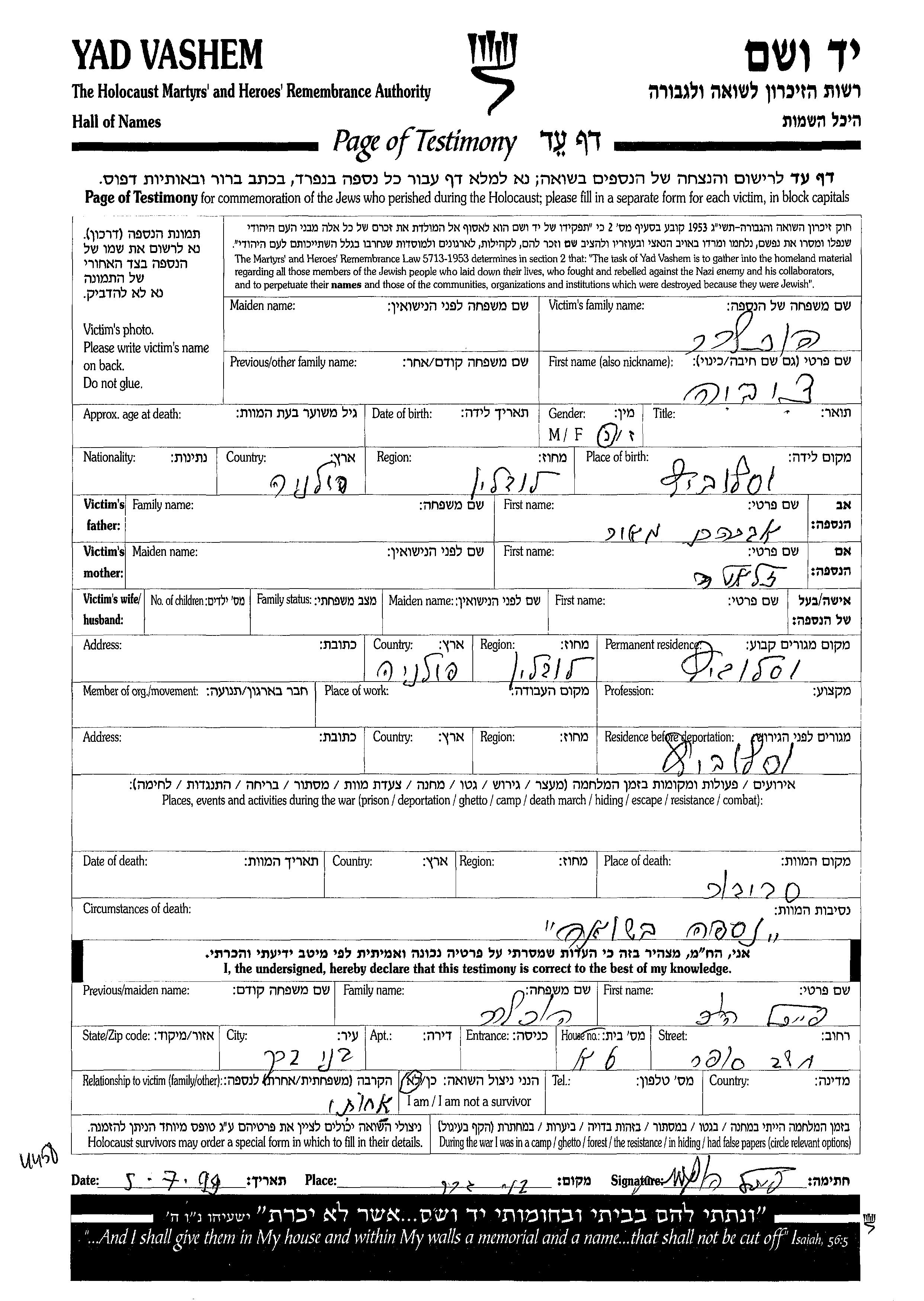 Tzivia wurde in der Schoah ermordet. Todesort: Sobibor, Polen.