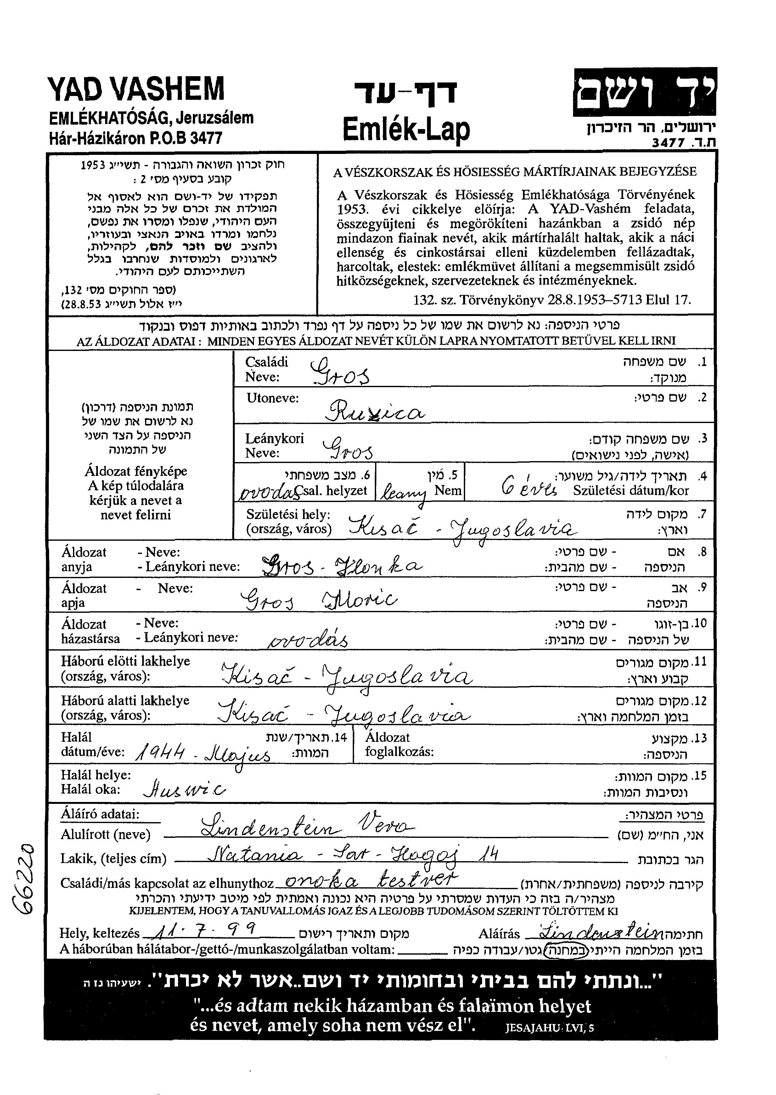 Ruzica wurde in der Schoah ermordet. Todesort: Auschwitz, Polen im Jahr 1944.
